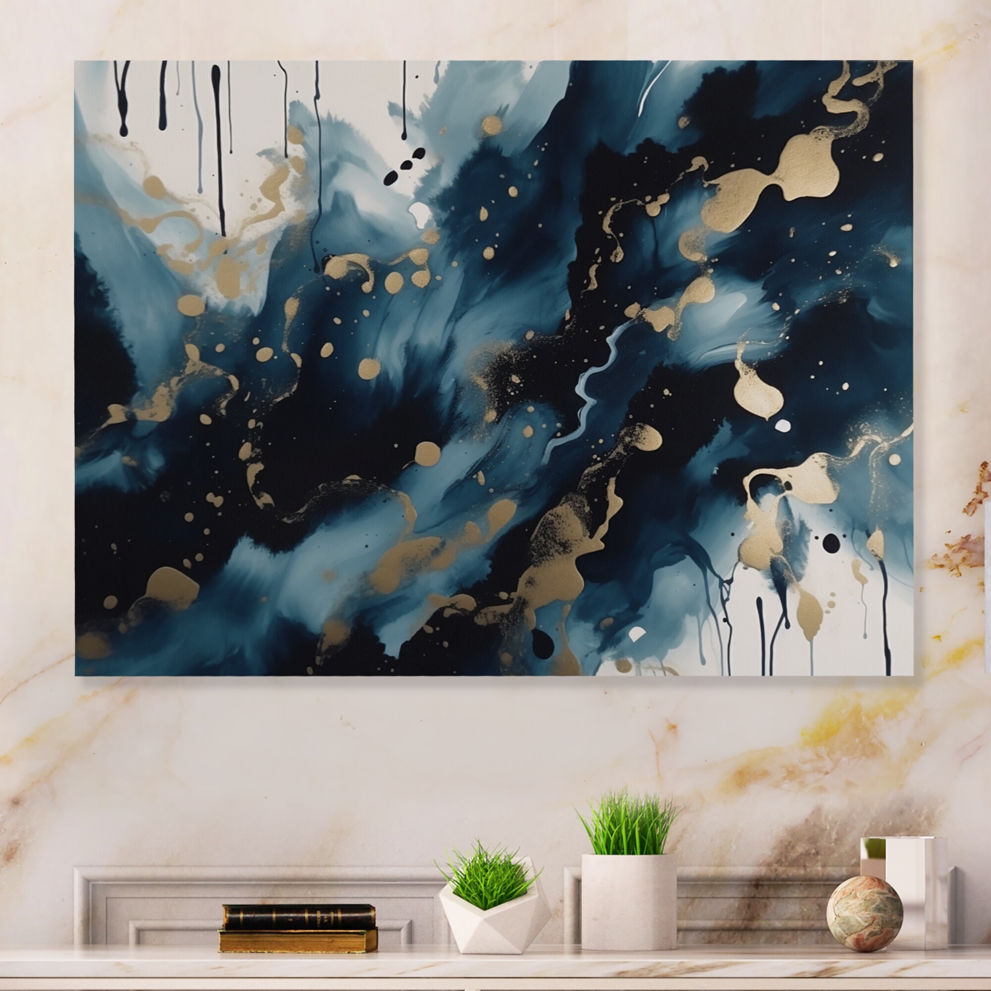 Designart "Blue And Gold Marble Liquid Ink" Abstract Marble Metal Wall Art