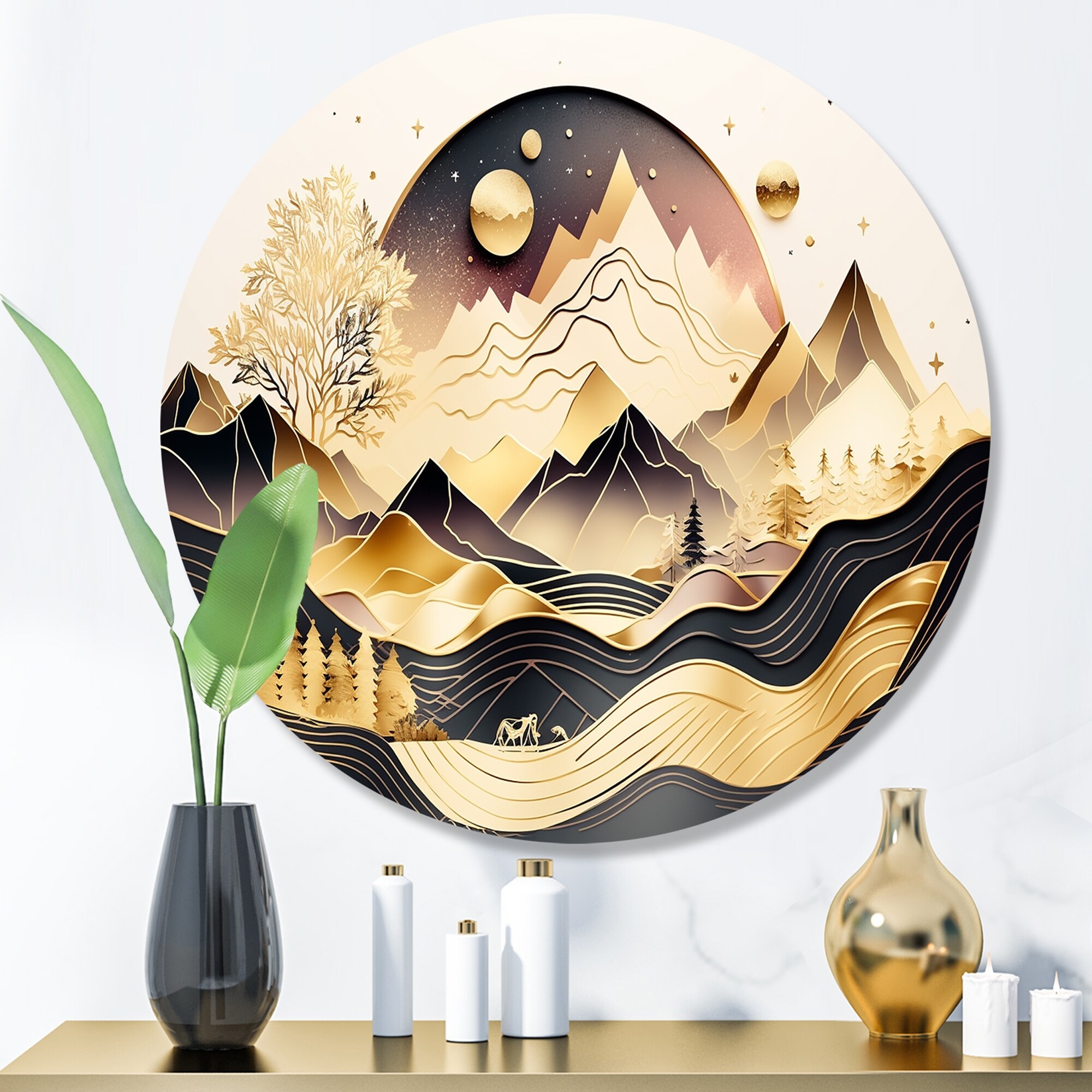 Designart "Gold Minimalist Mountains III" Minimalism Landscape Metal Wall Art