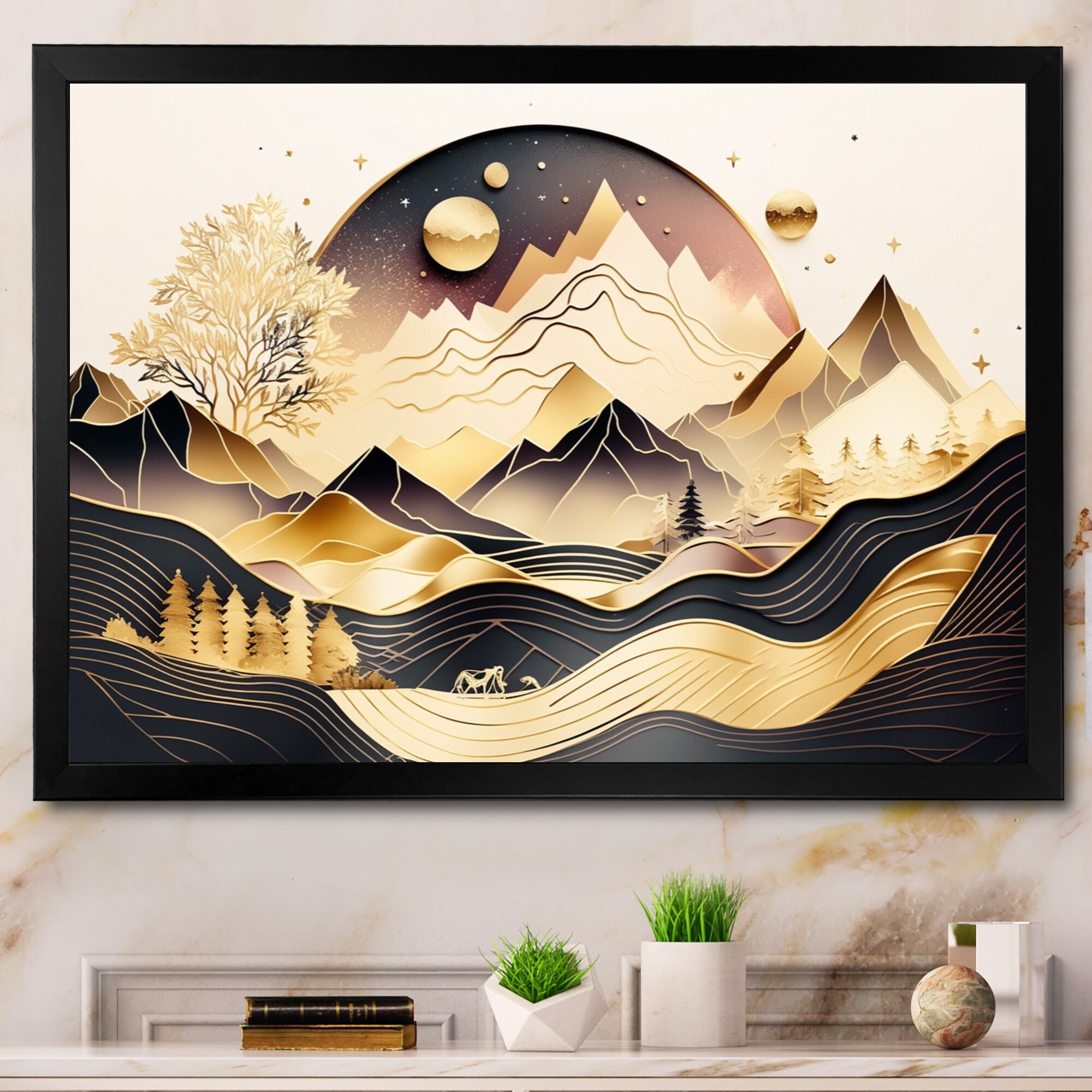 Designart "Rose Gold Metallic Mountains Vi" Minimalism Landscape Framed Wall Art Prints