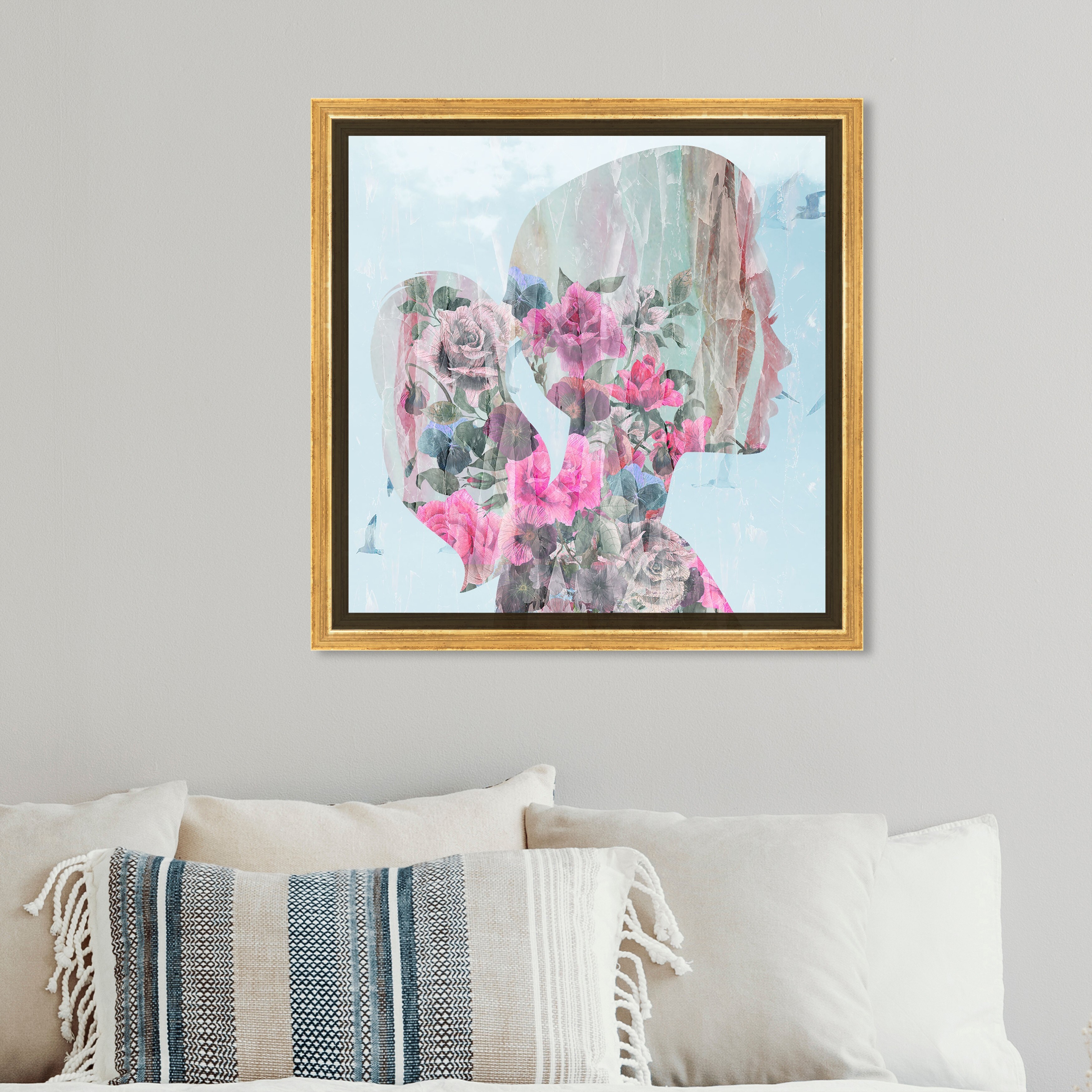 Oliver Gal 'Her Head in the Clouds' Fashion and Glam Wall Art Framed Canvas Print Portraits - Blue, Pink
