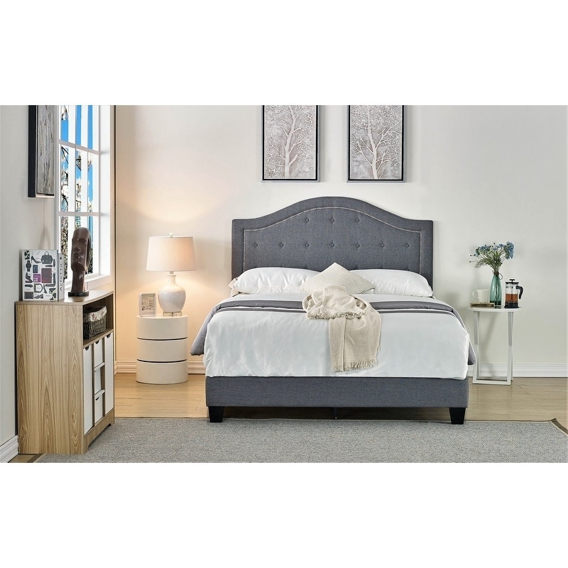Upholstered Platform Bed with Classic Headboard,Linen Fabric