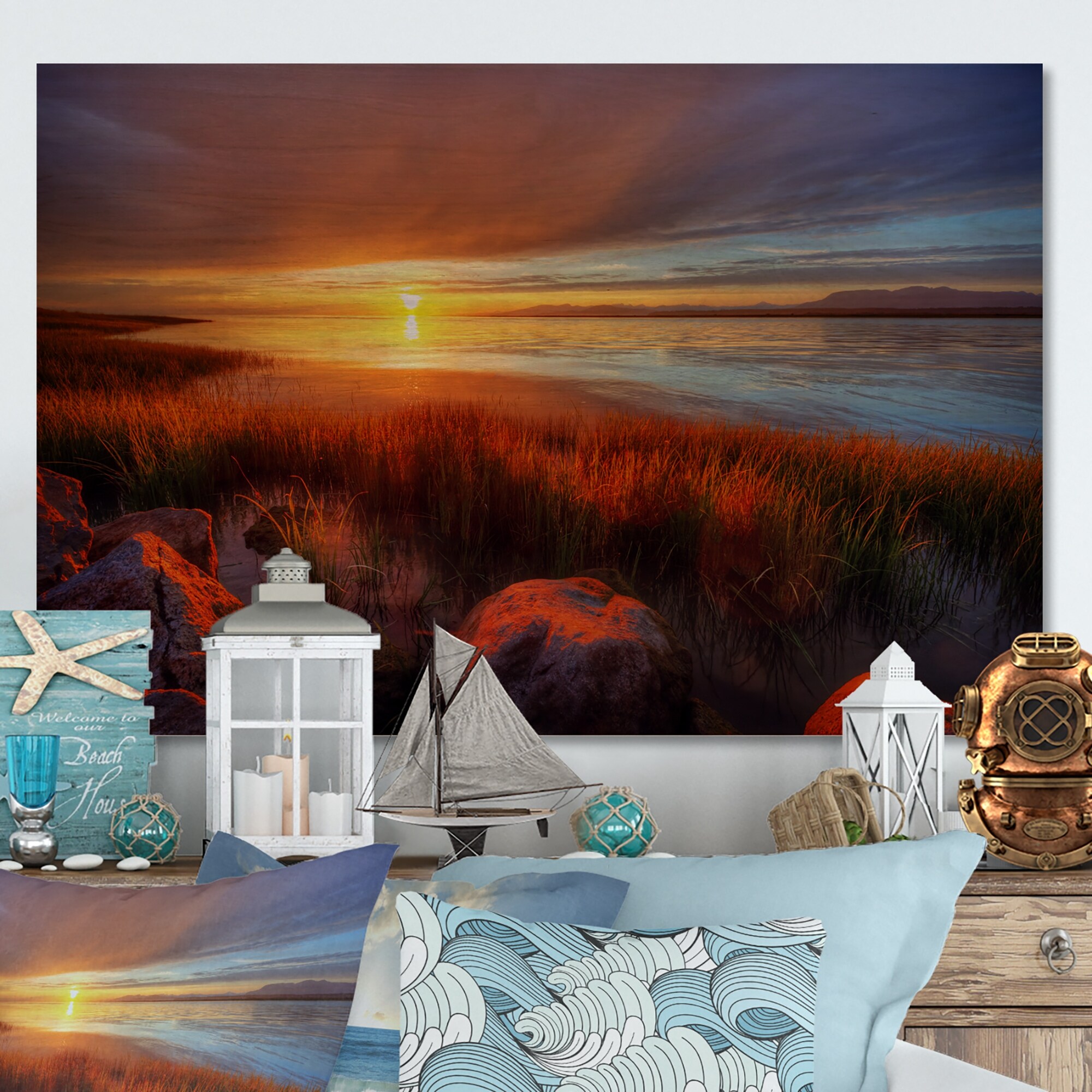 Designart 'Calm Water At Sunset II' Nautical & Coastal Wood Wall Art Décor - Natural Pine Wood