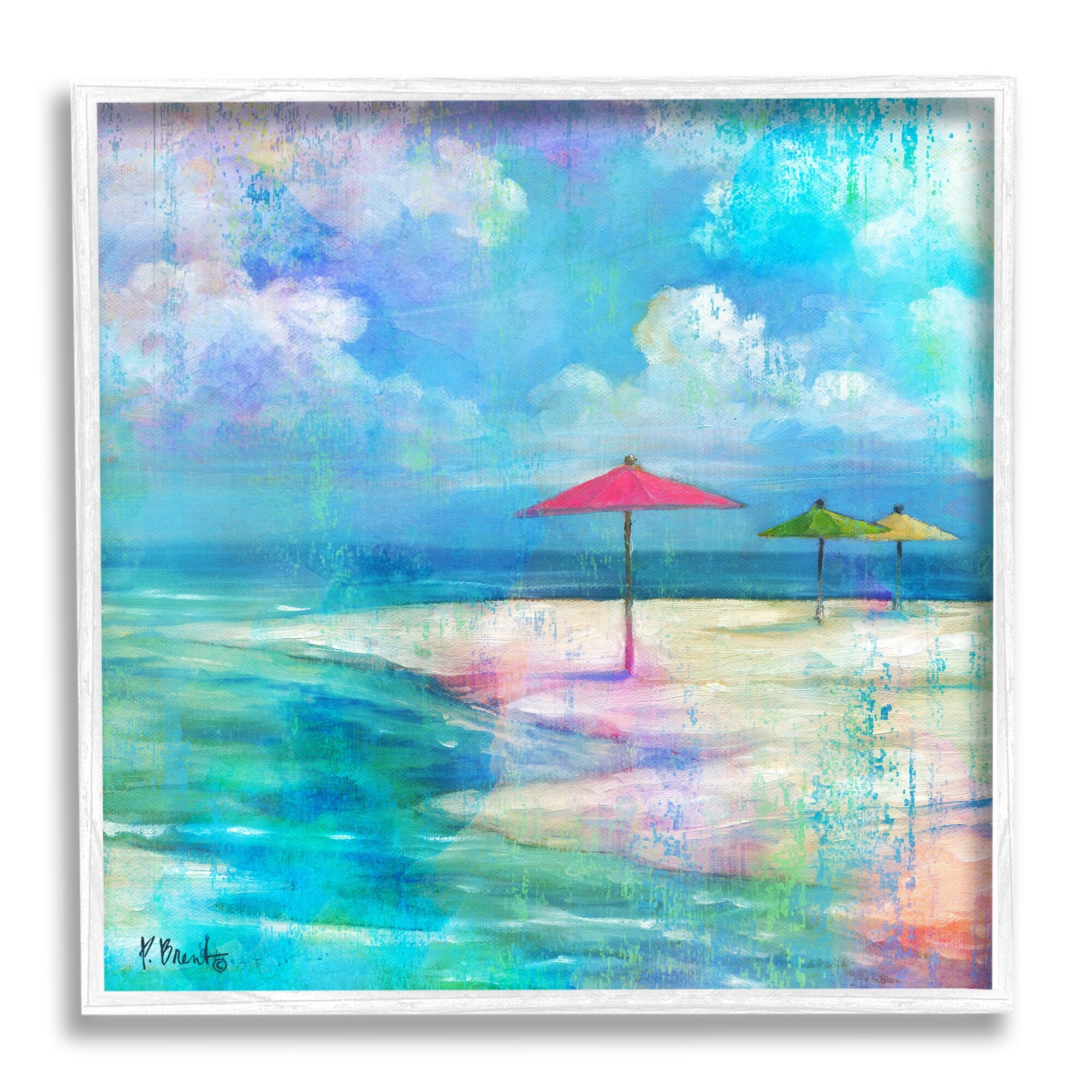Stupell Umbrella Beachscape Watercolor Mirage Framed Giclee Texturized Wall Art, Design By Paul Brent