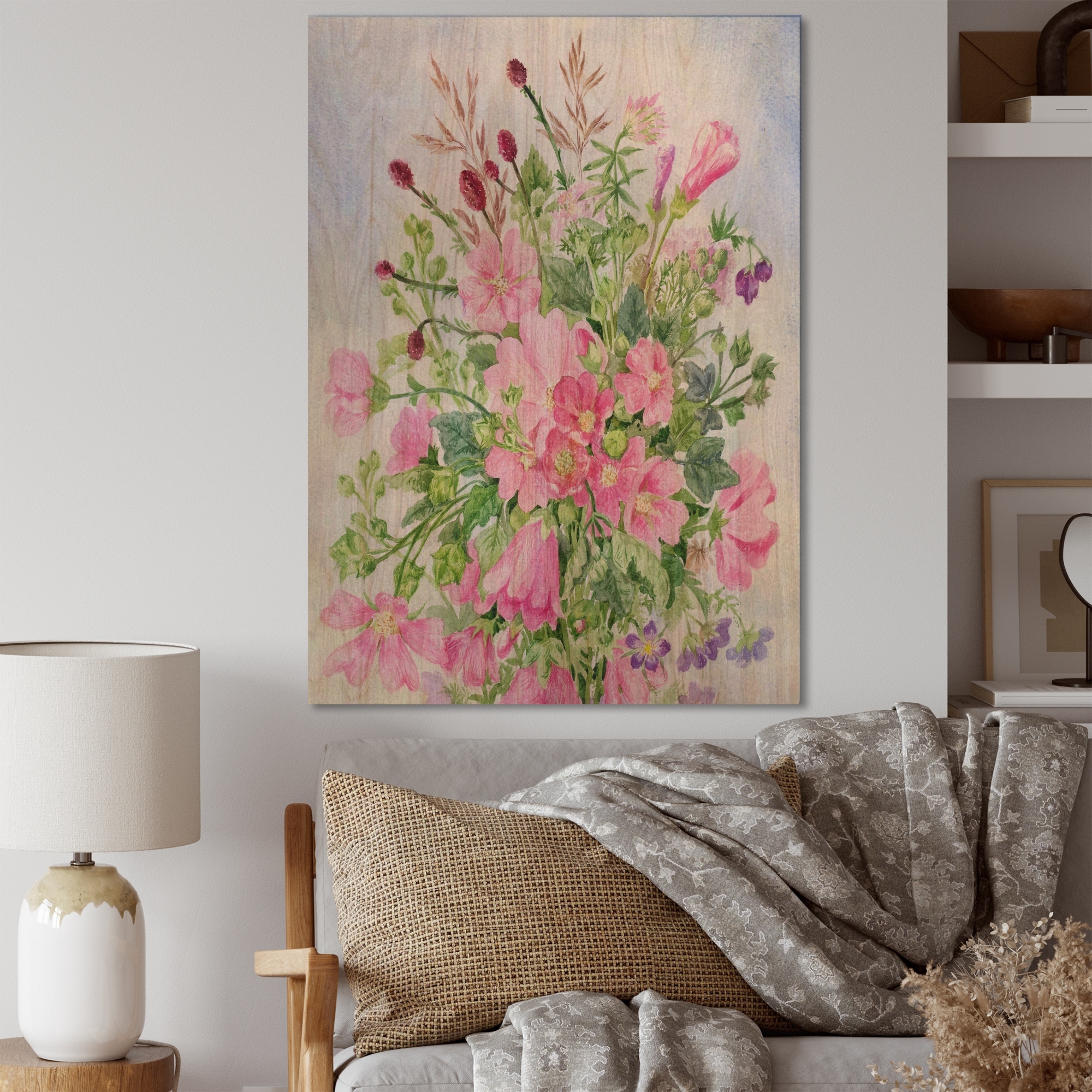 Designart 'Blossoming Wild Flowers in the Meadows II' Traditional Wood Wall Art - Natural Pine Wood