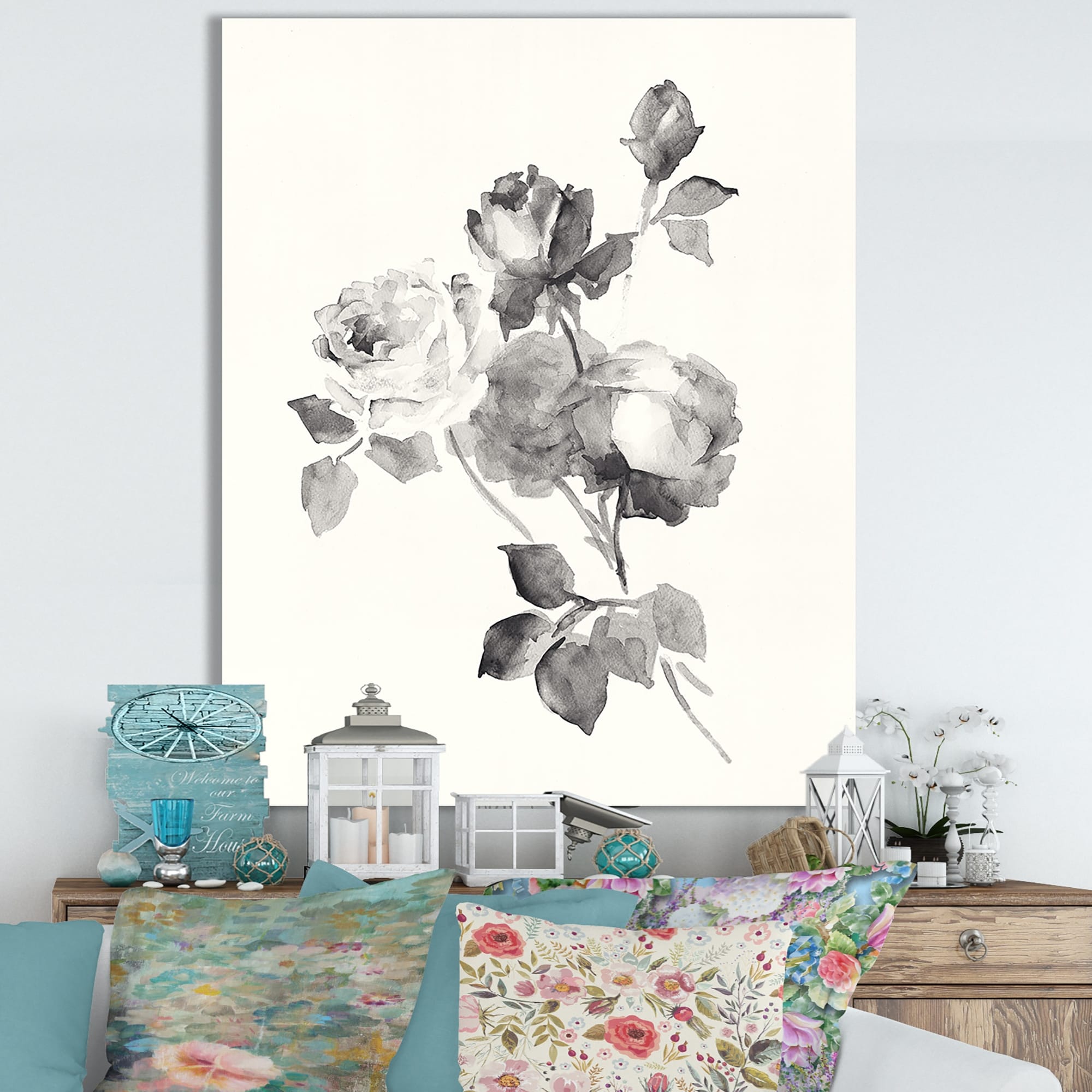Porch & Den "Rose Blossoms Gray" Cottage Canvas Wall Art