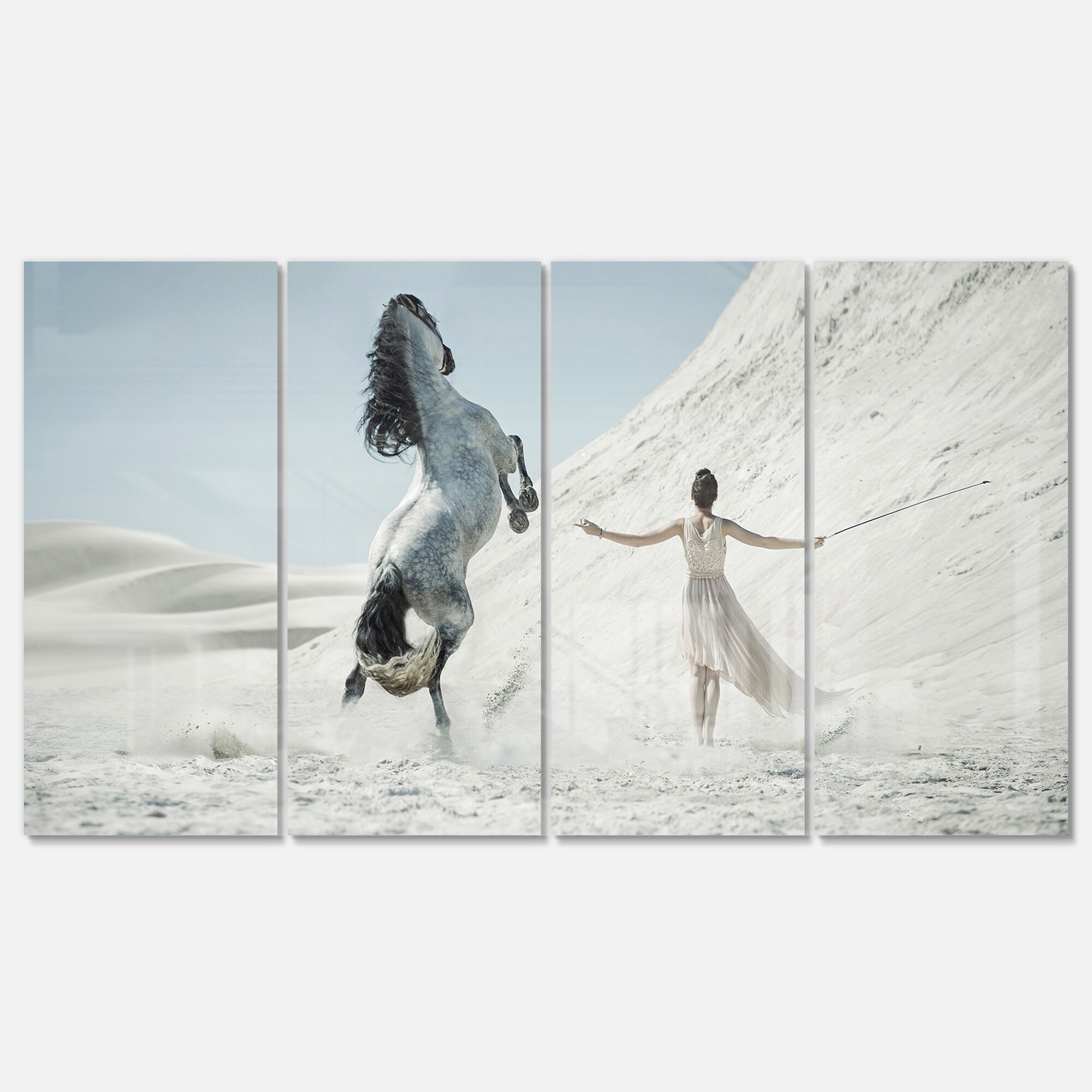 Designart 'Huge Horse and Lady on Desert' Large Animal Metal Wall Art
