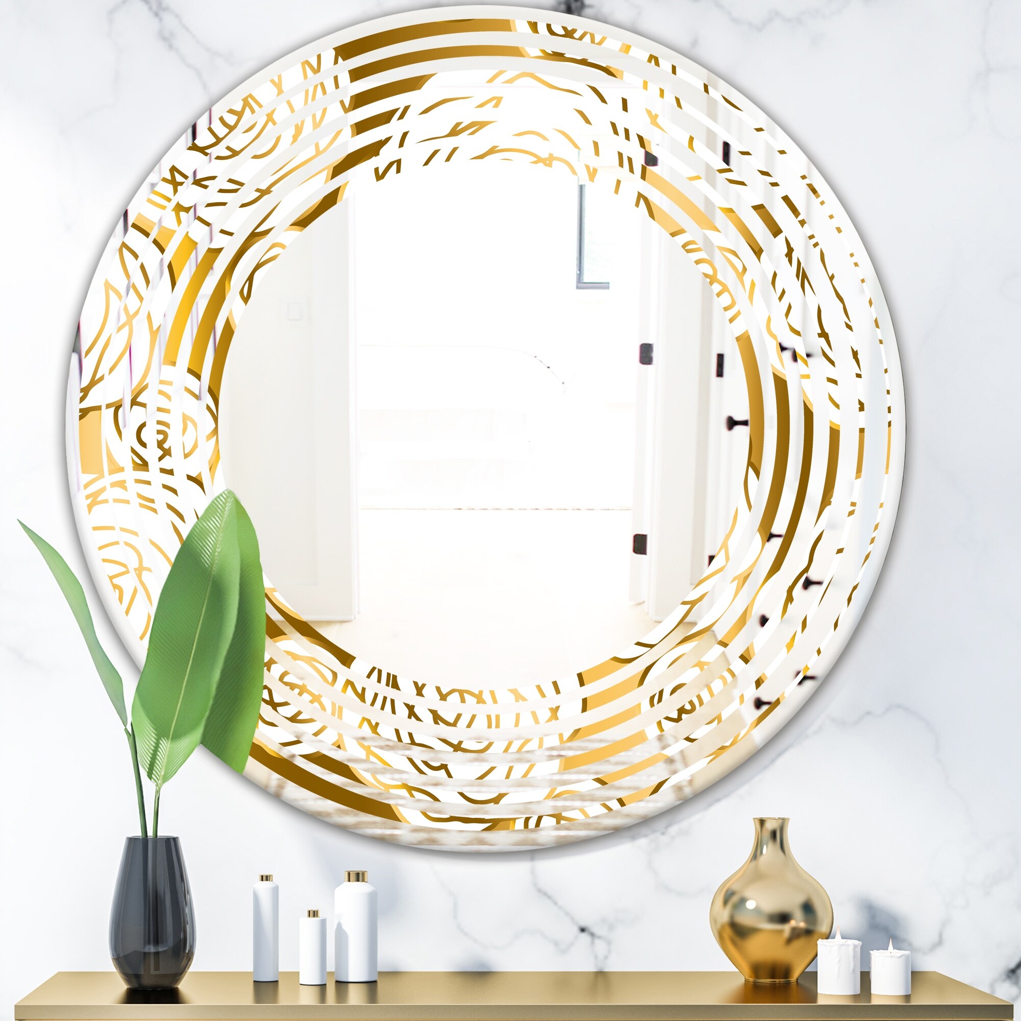 Designart 'Golden Floral III' Printed Modern Round or Oval Wall Mirror - Wave