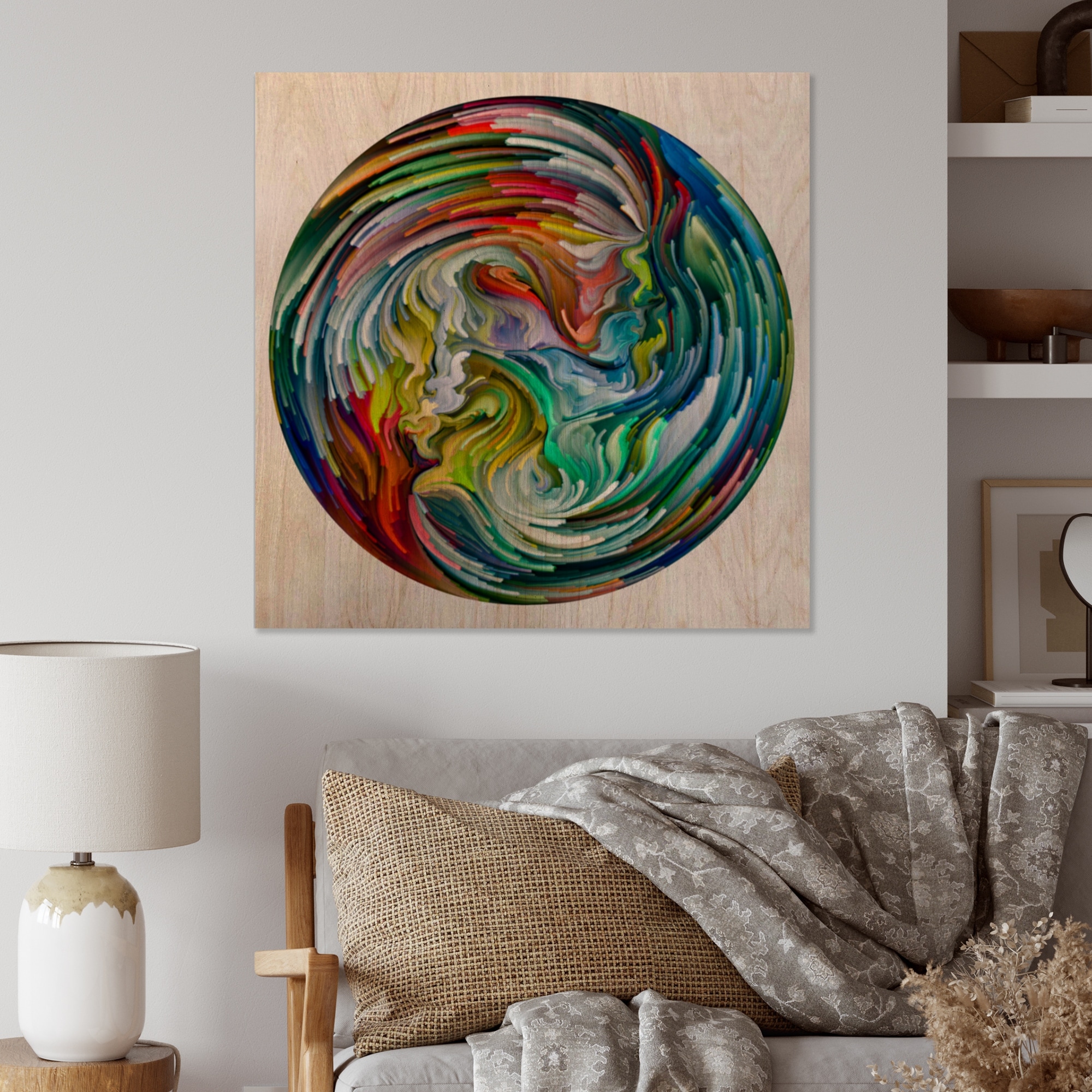 Designart 'Circle Colorful Liquid Color Flow III' Modern Wood Wall Art Panels - Natural Pine Wood