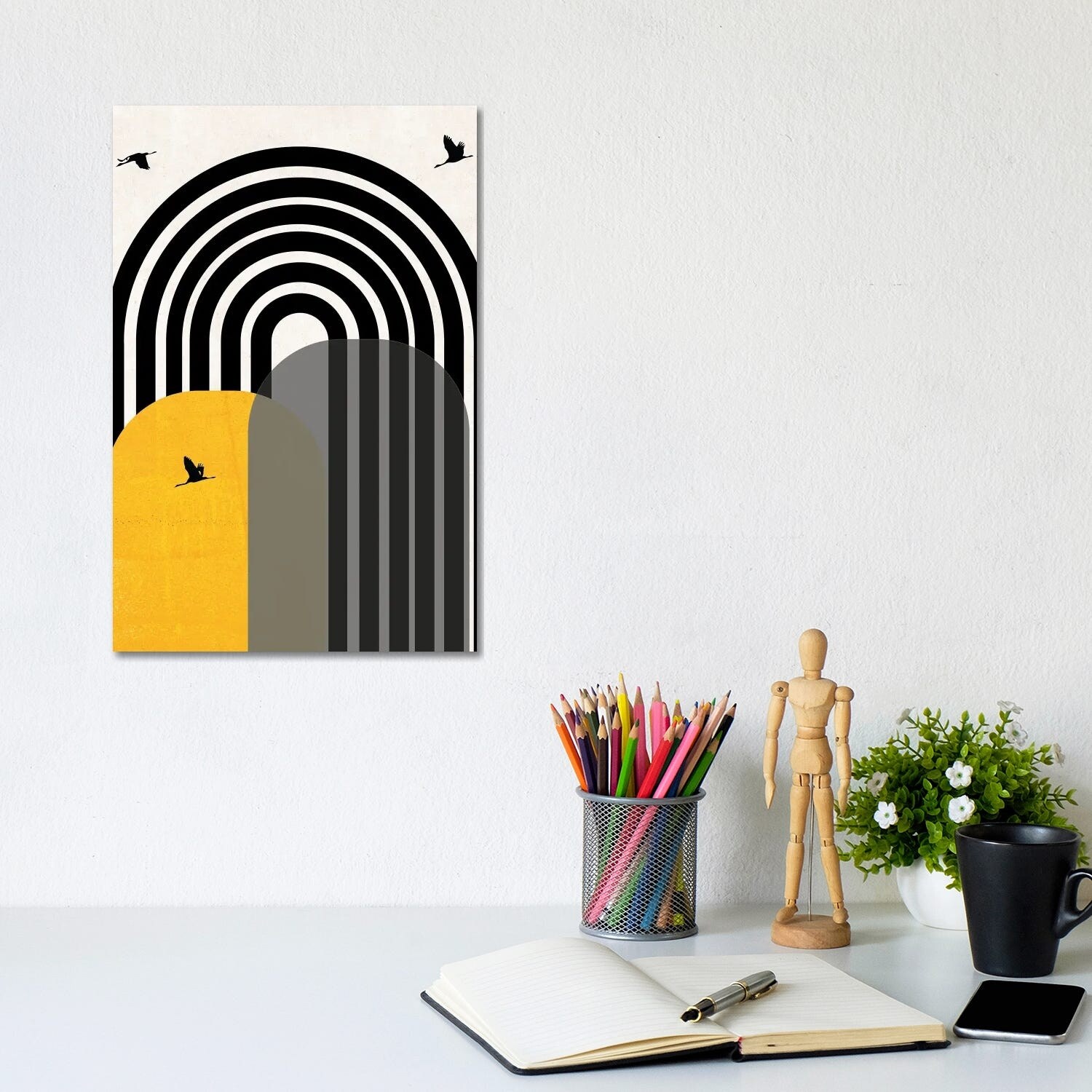 iCanvas "Giant Rainbow With Birds Mustard" by Pixy Paper Canvas Print