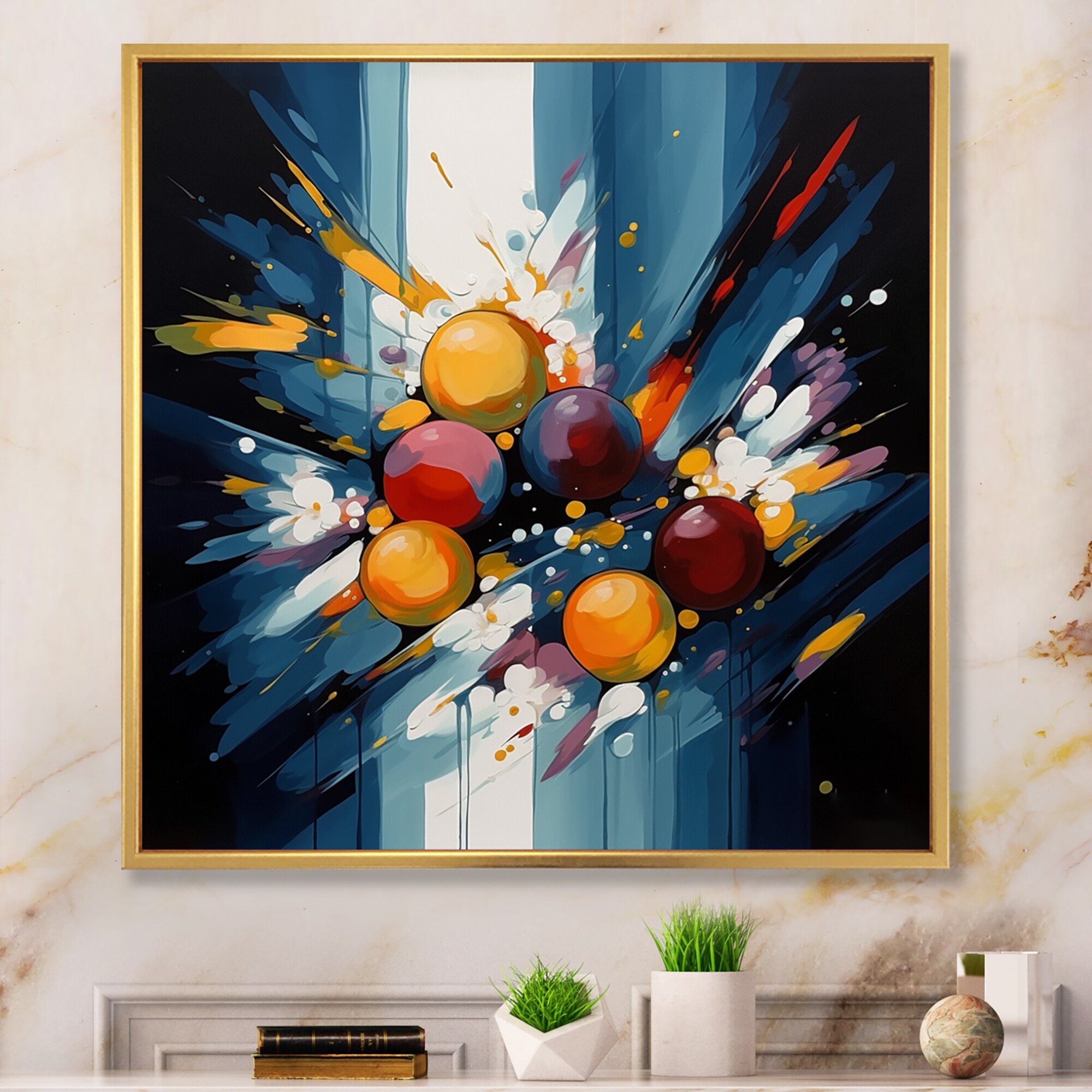 Designart "Blue and Pink Spatula Abstract" Abstract Framed Art Print