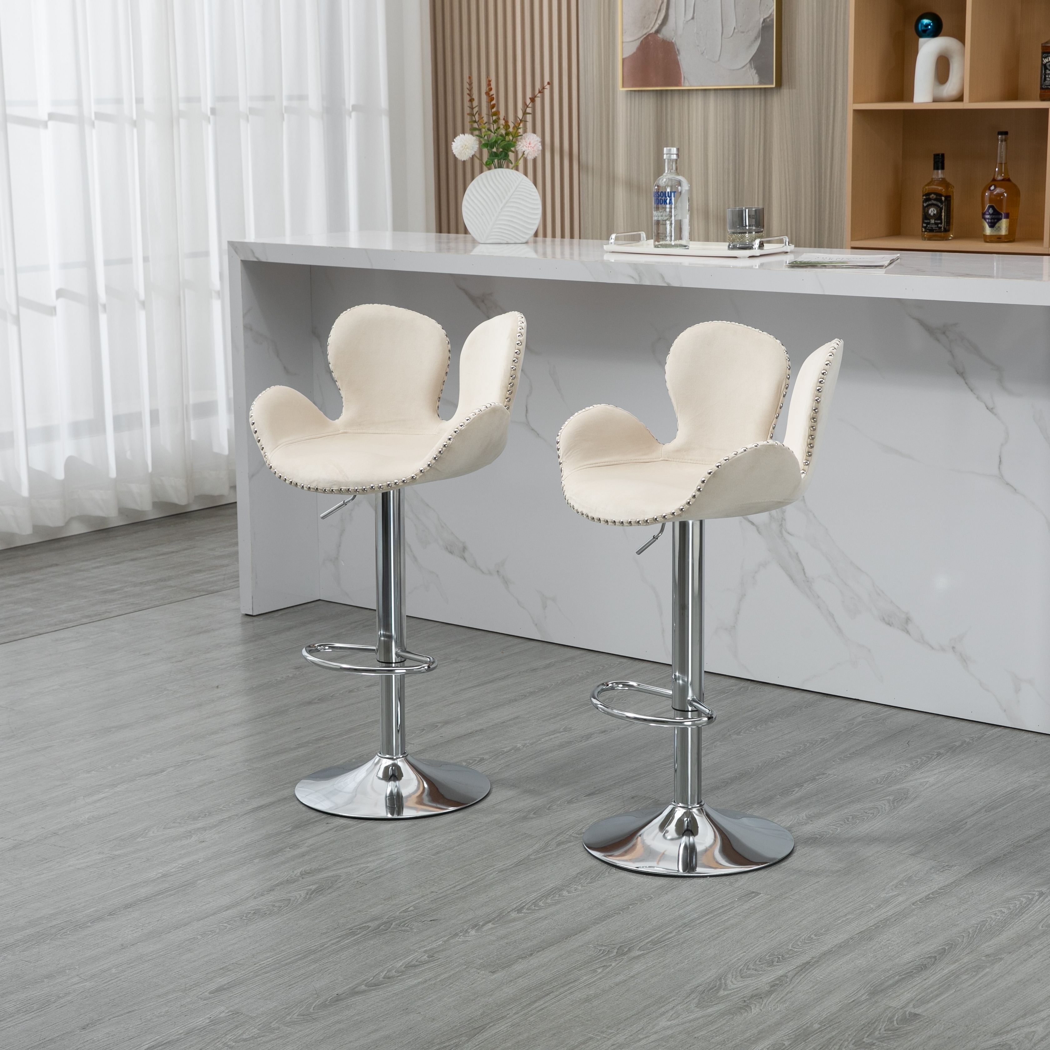 Velvet Swivel Adjustable Height Petal Bar Stools With Footrest (set of 2)