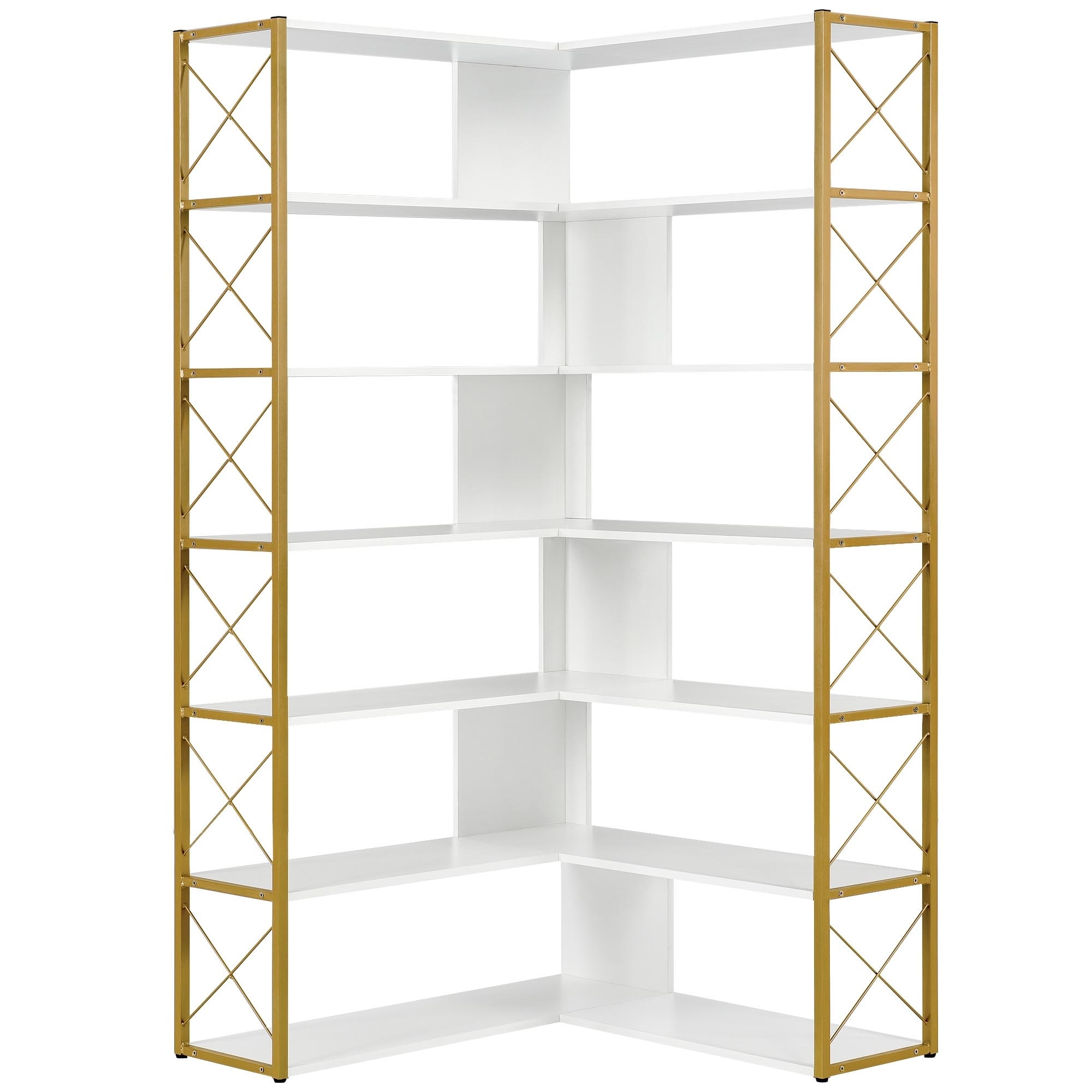 Industrial 7-Tier Bookshelf, L-Shaped Corner Bookcase with Metal Frame