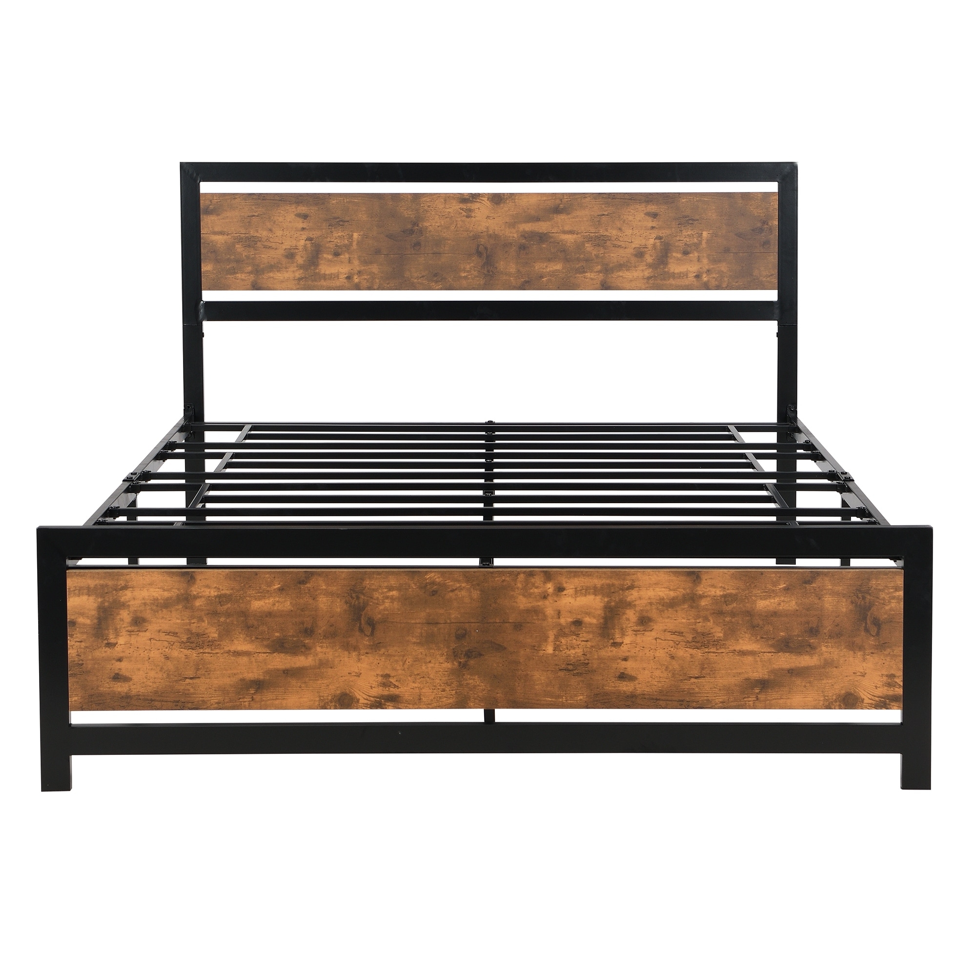 Black Queen Size Metal&Wood Bed Frame Platform Bed with Headboard and Footboard, Easy Assemble, 81.8''L*60.2''W*39.3''H, 70LBS