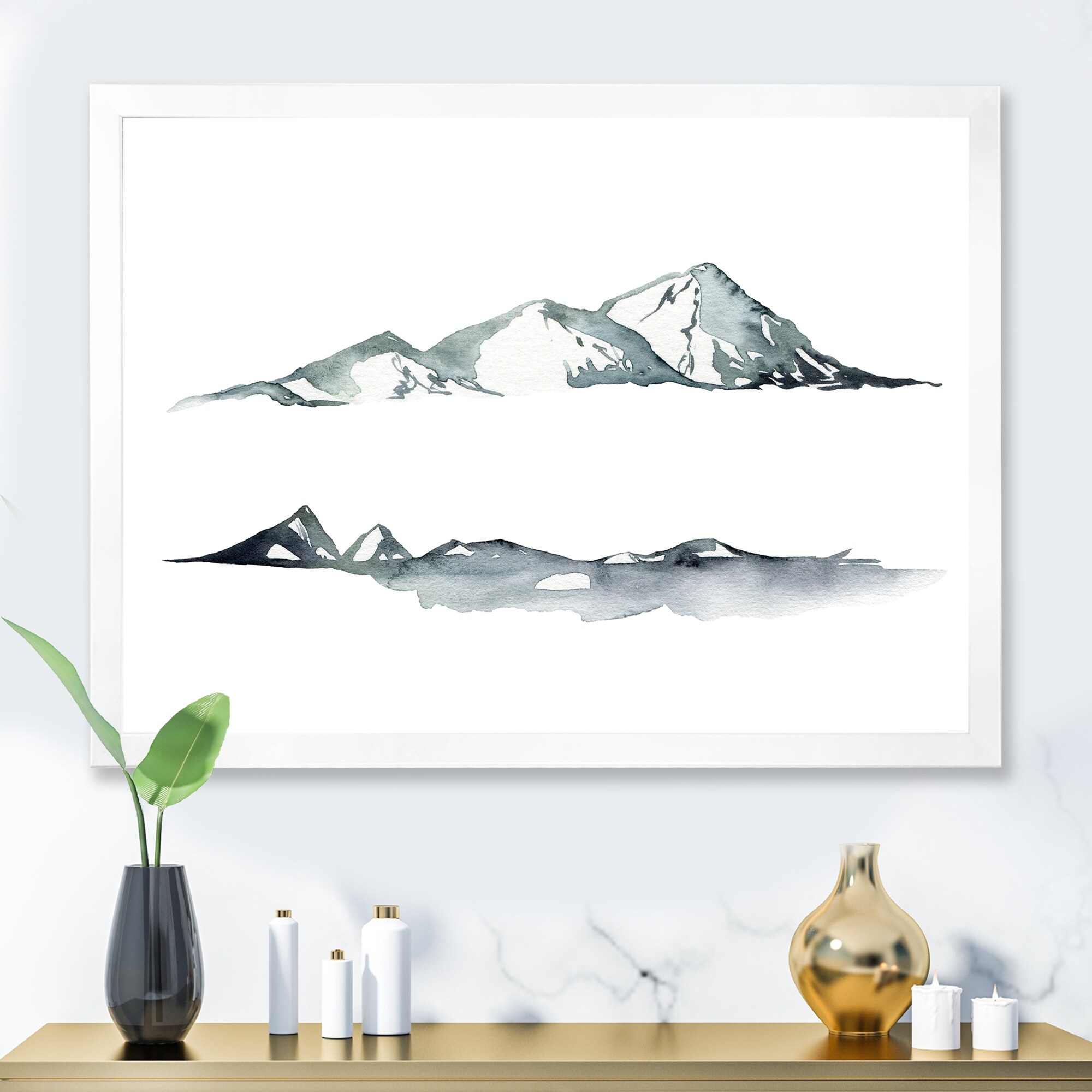 Designart "Minimalistic Landscape of Dark Blue Mountains" Modern Framed Art Print