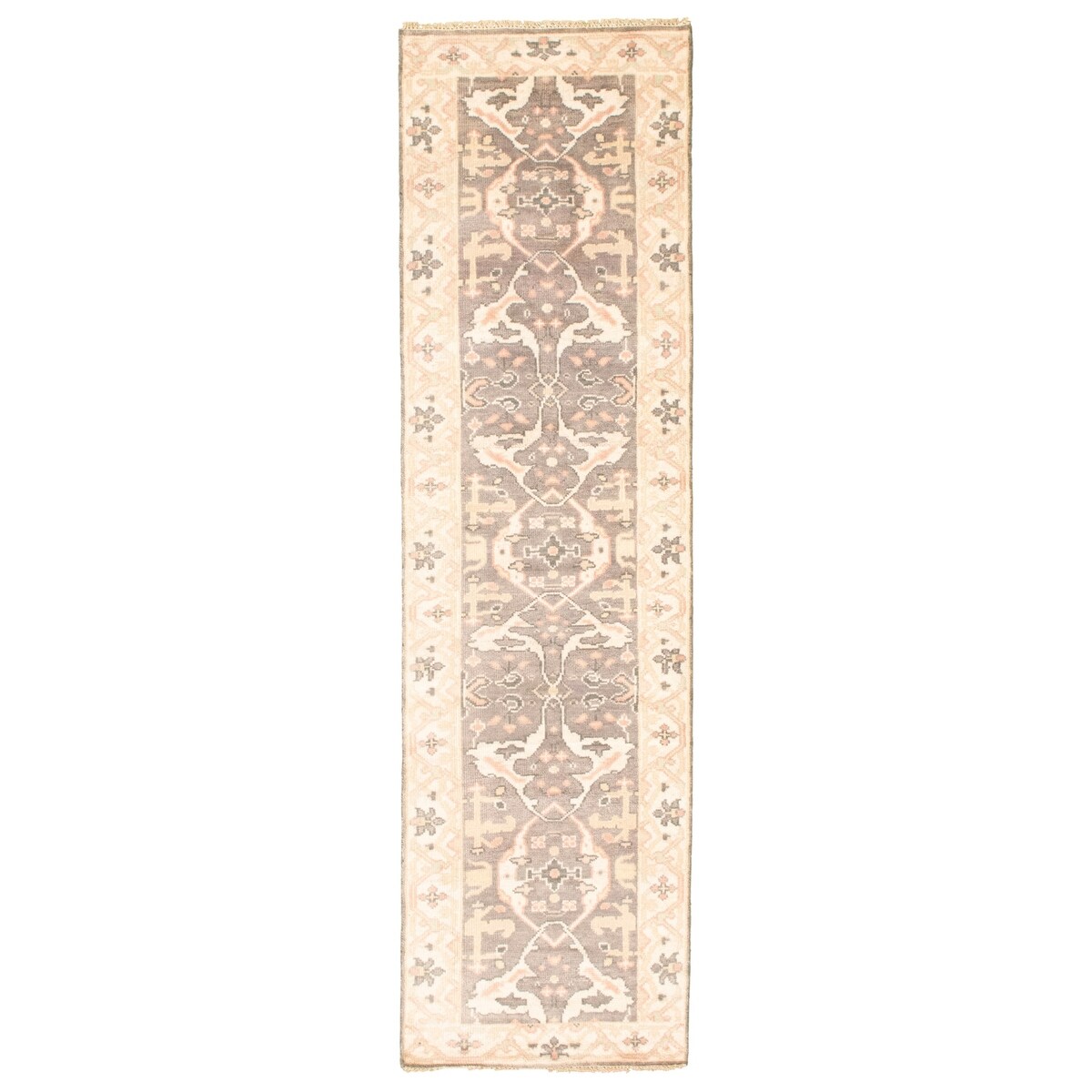 ECARPETGALLERY Hand-knotted Royal Ushak Dark Grey Wool Rug - 2'7 x 9'8