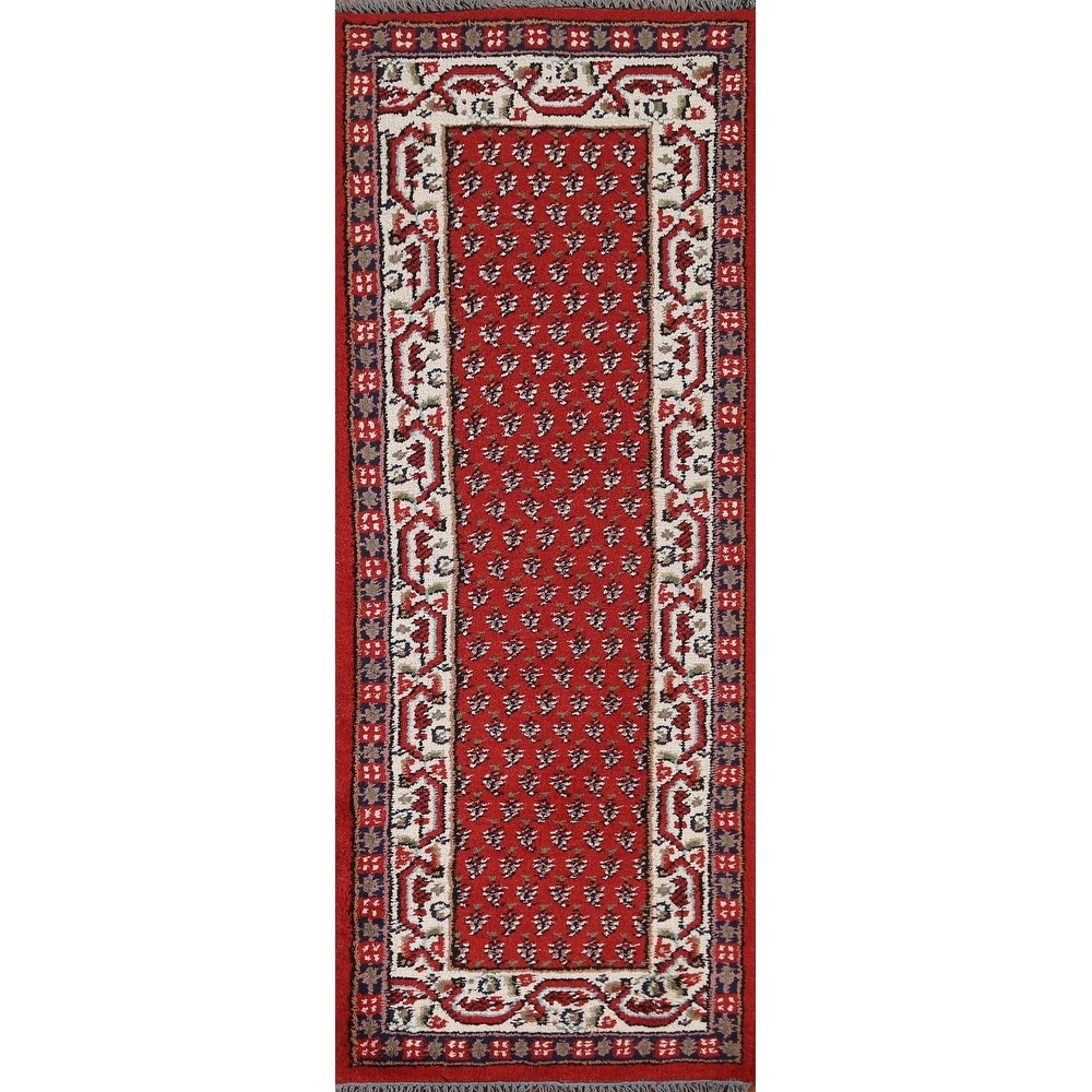 Boteh Traditional Botemir Red Runner Rug Hand-knotted Wool Carpet - 2'4" x 6'3"