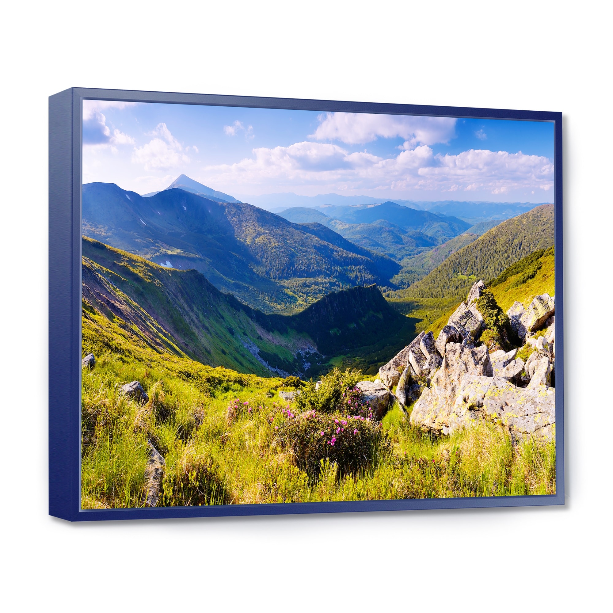 Designart "Rocky Summer Hills under Blue Sky" Landscape Framed Canvas Art Print
