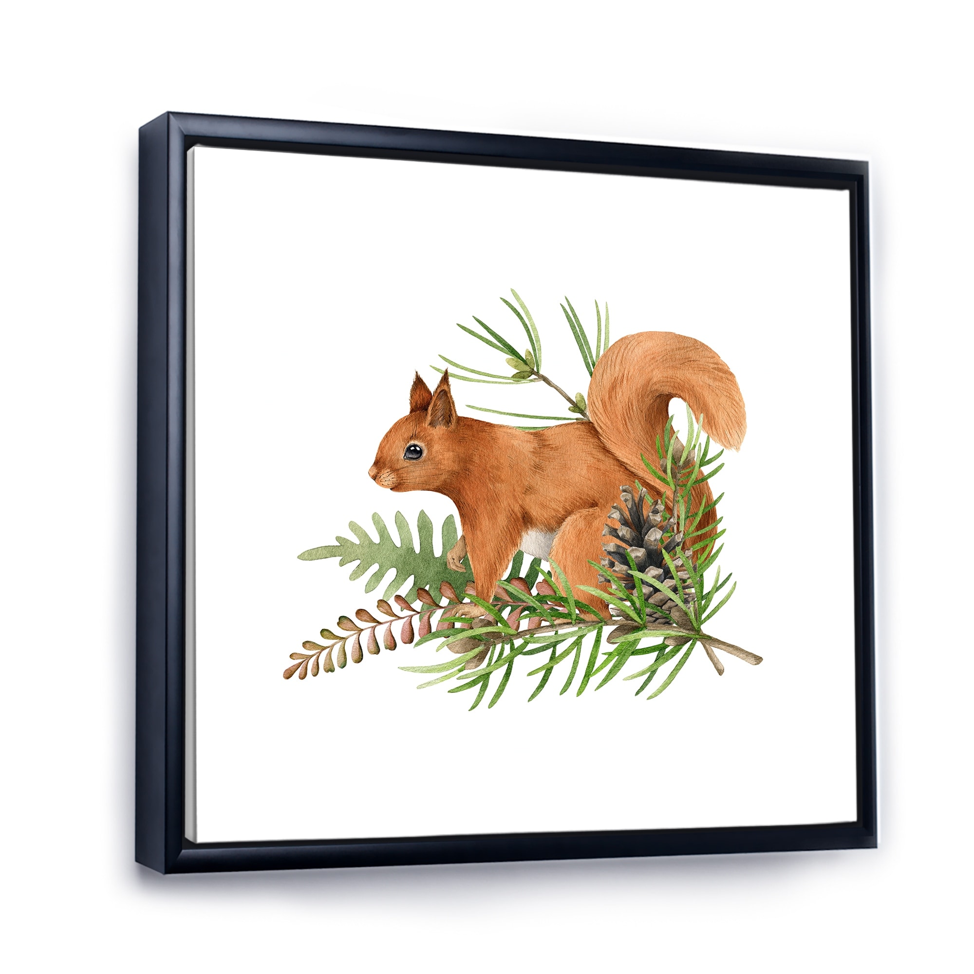 Designart "Red Squirrel Animal on Pine Branch" Traditional Framed Canvas Wall Art Print