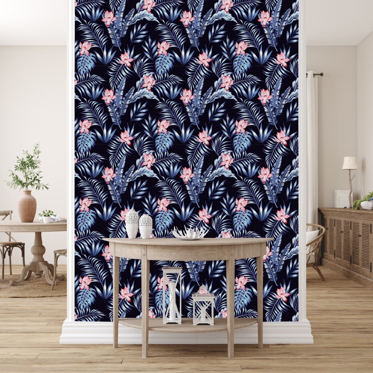 Blue Palm Leaves Wallpaper Peel and Stick and Prepasted