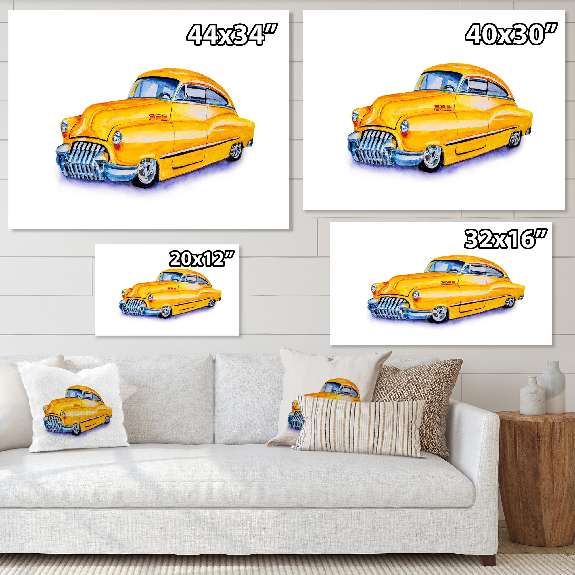 Designart "Yellow Retro Car" Industrial Canvas Wall Art Print