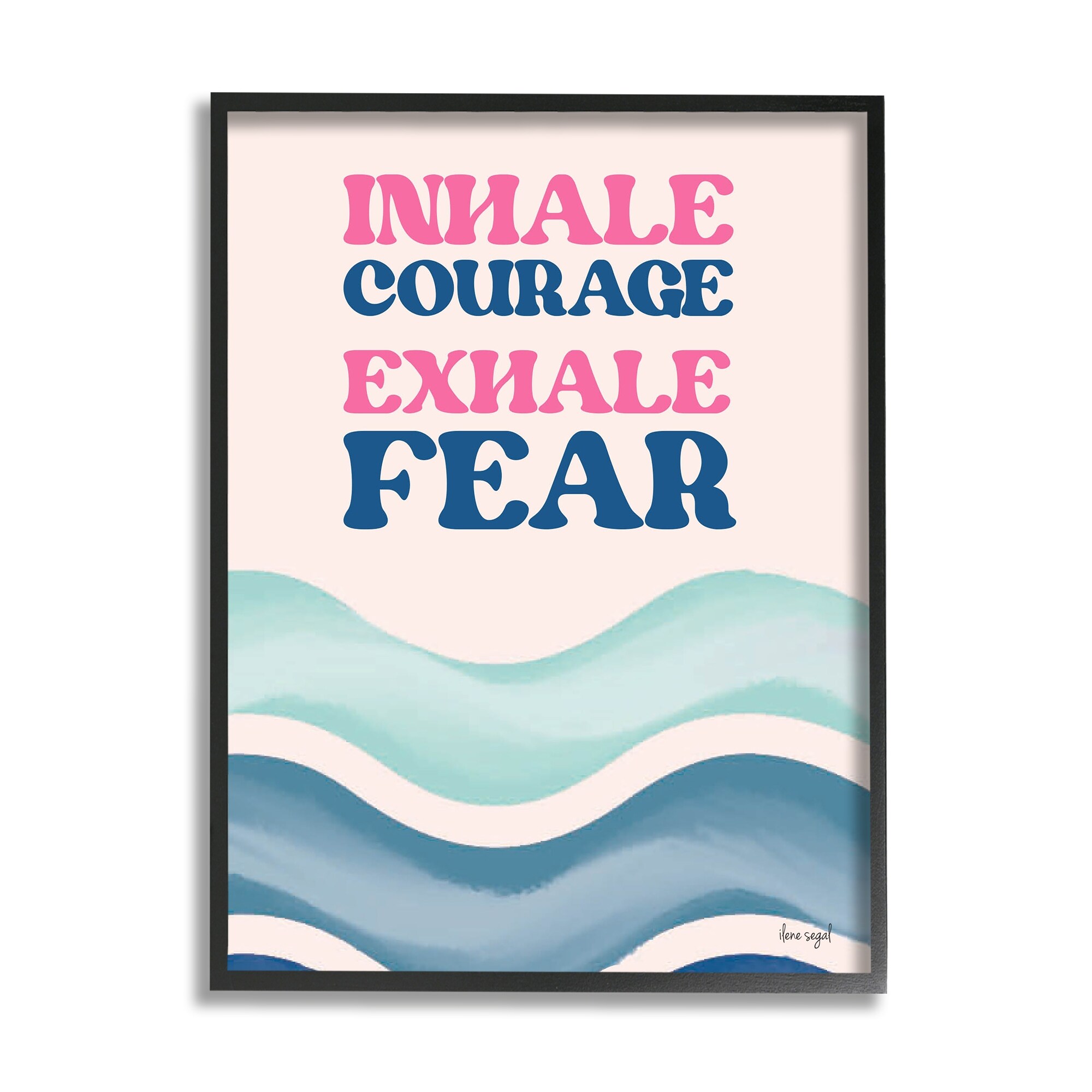 Stupell Inhale Courage Exhale Fear Motivational Typography Sentiment Framed Wall Art, Design by Ilene Segal - Blue