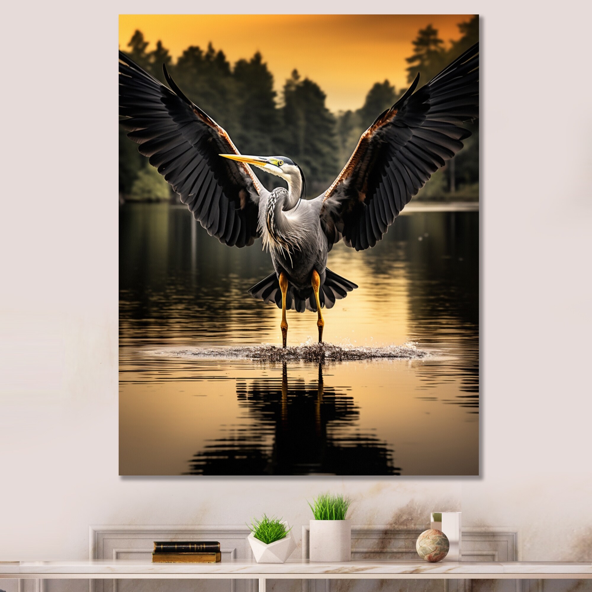 Designart "Heron Winged Majesty II" Animals Heron Canvas Art Print