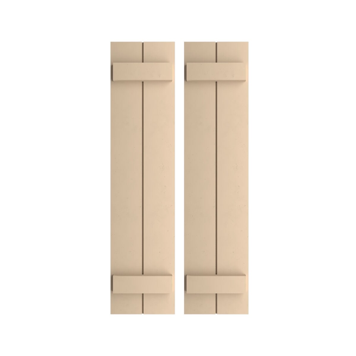 Rustic Two Board Joined Board-n-Batten Faux Wood Shutters (Per Pair), Primed Tan