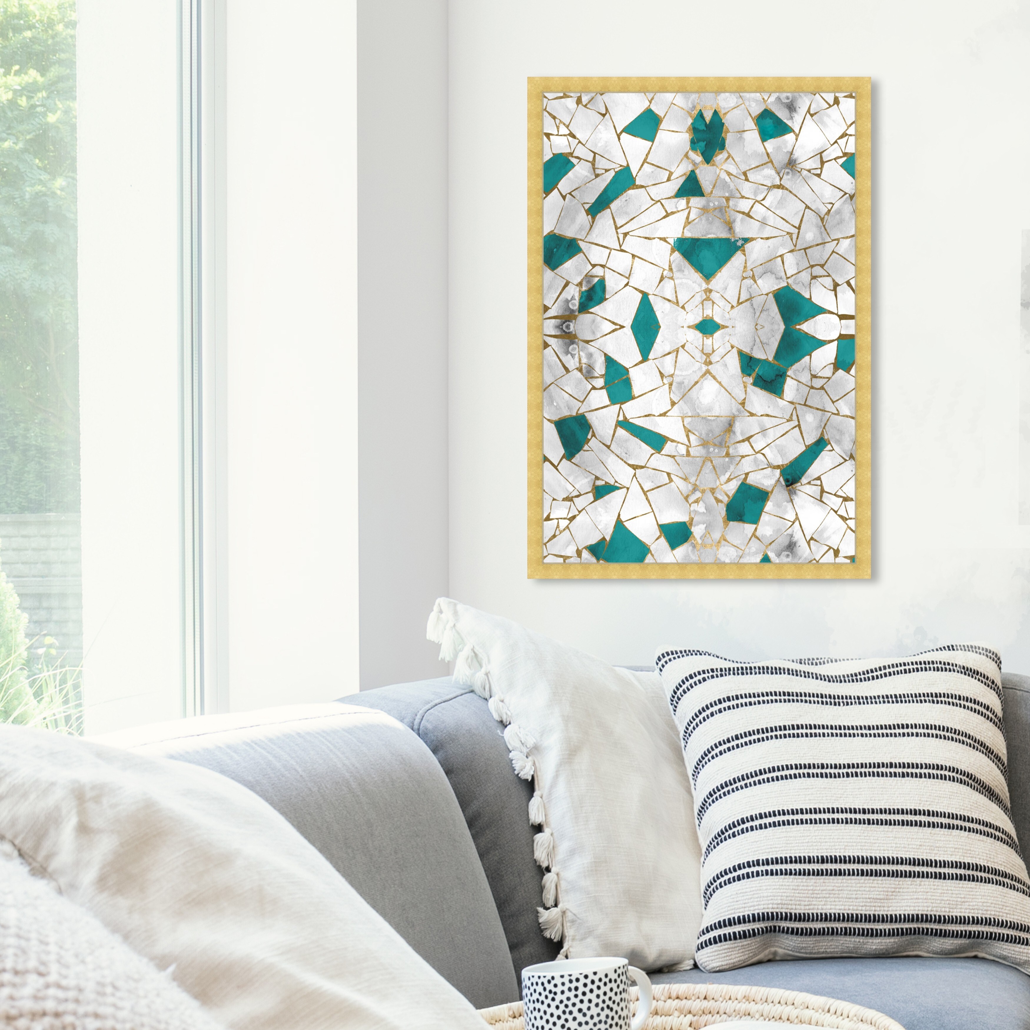 Oliver Gal 'Emerald Stone' Abstract Wall Art Framed Print Patterns - Gold, Green