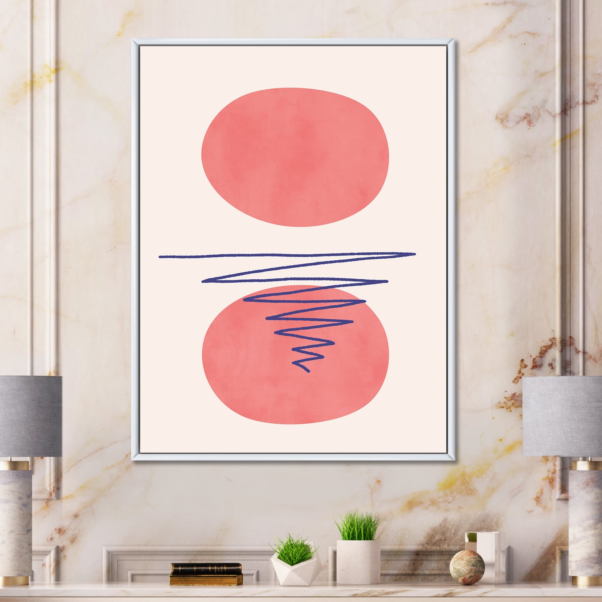 Designart "Two Abstract Red Moons" Modern Framed Canvas Wall Art Print
