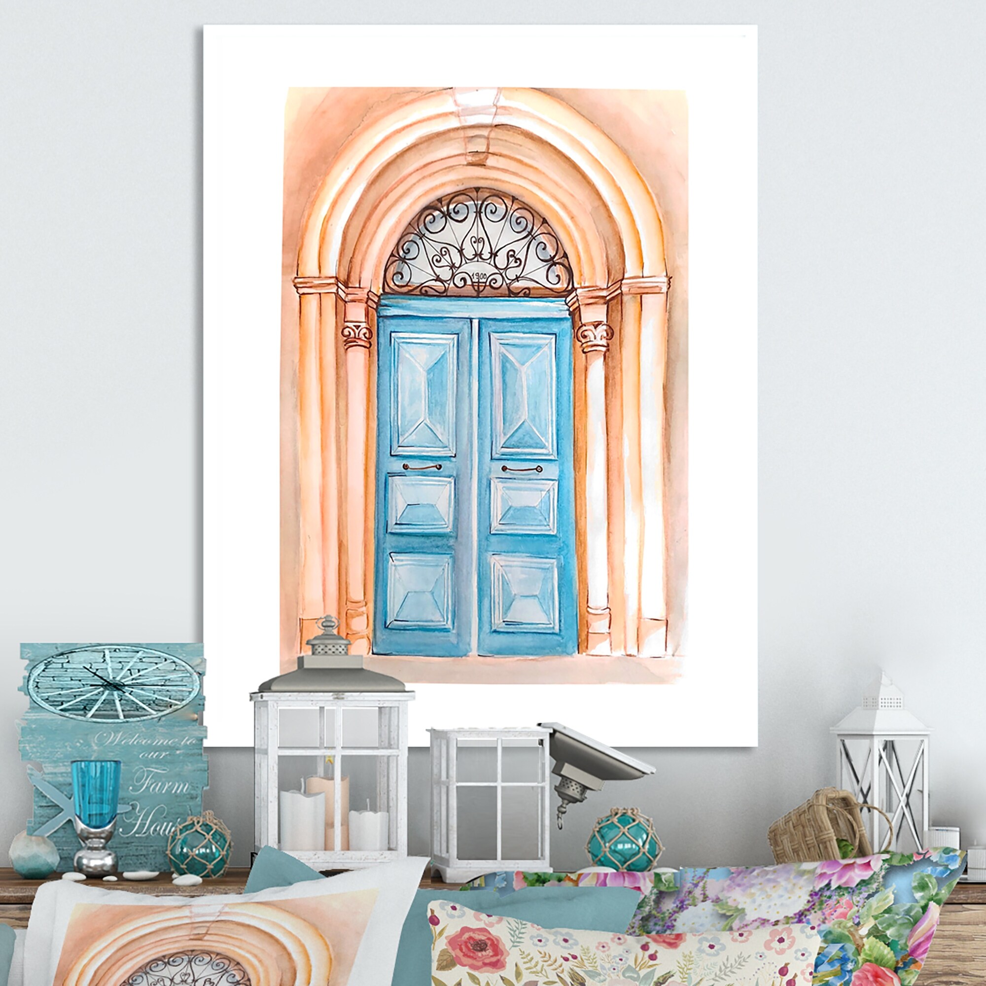 Designart "Vintage Door Illustration" Cabin & Lodge Canvas Wall Decor