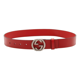 Gucci Interlocking Leather GG Buckle Antiqued Silver Tone Belt Rosso Red 95/38
