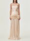 Trägerloses Säulenkleid mit Perlenfransen – Schnürung am Rücken