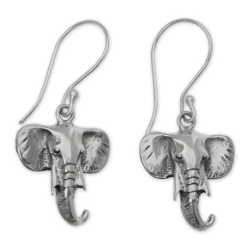 NOVICA Handmade Sterling Silver 'Balinese Elephants' Earrings (Indonesia) - 1.3*0.6