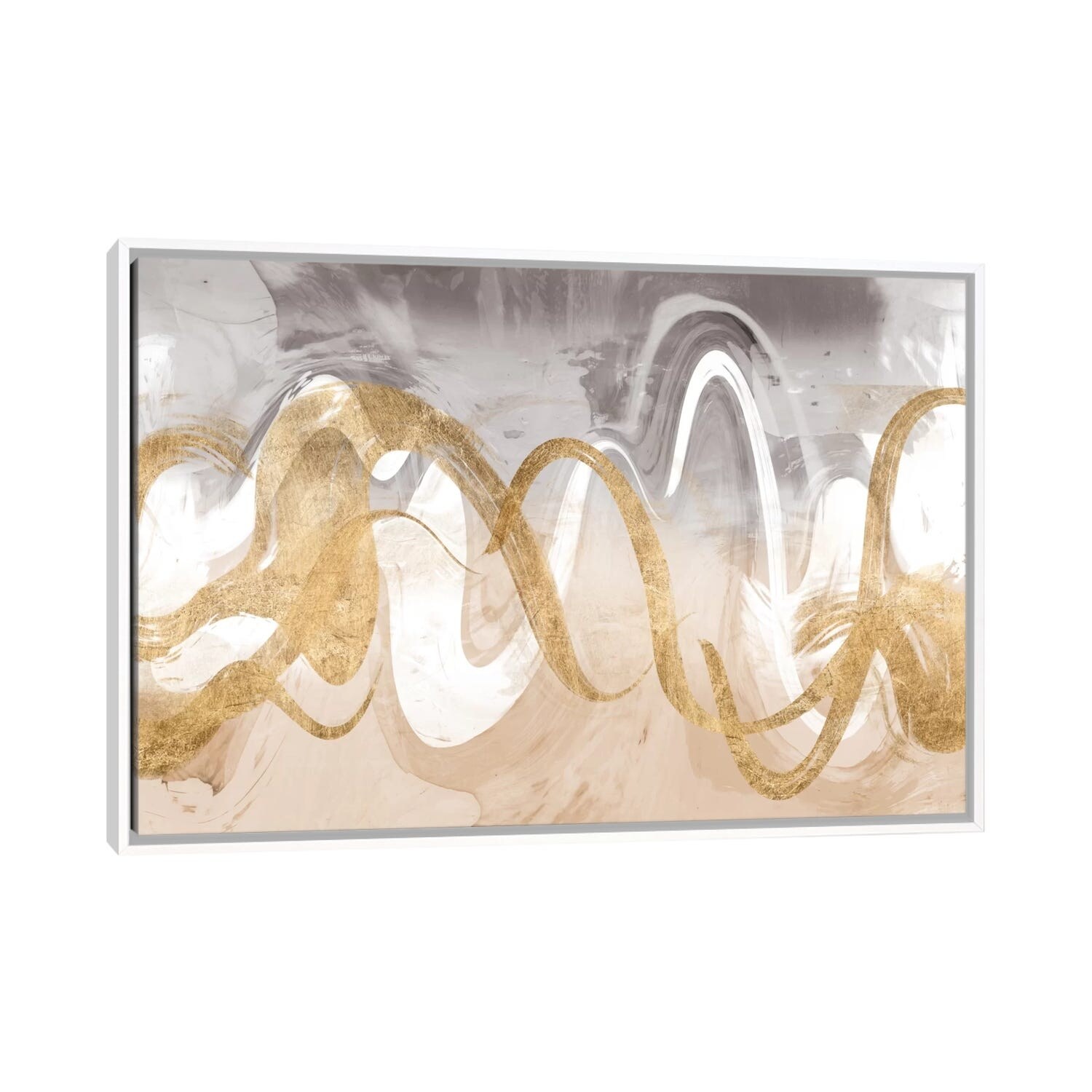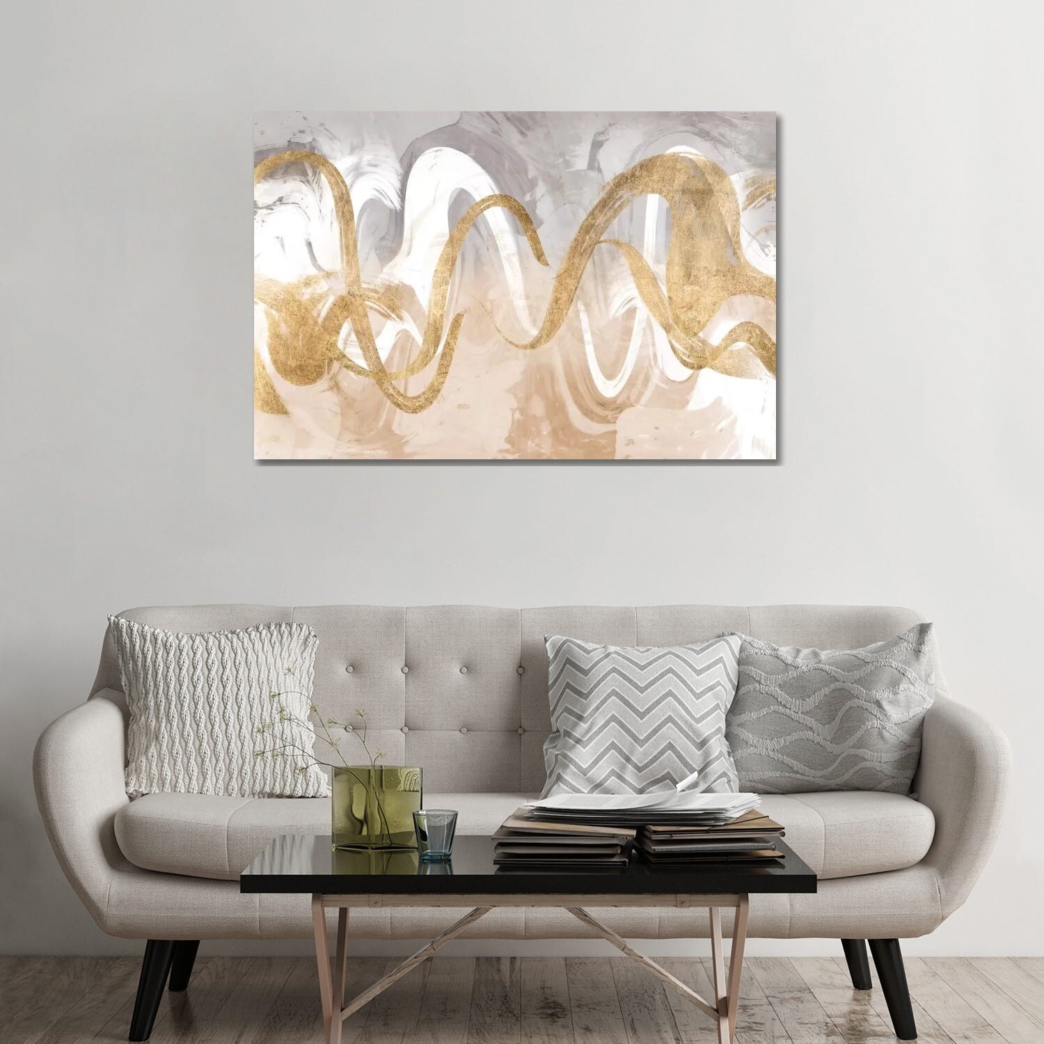 Designart "Gold White Infinite Ripples" Modern Waves Framed Wall Art for Living Room