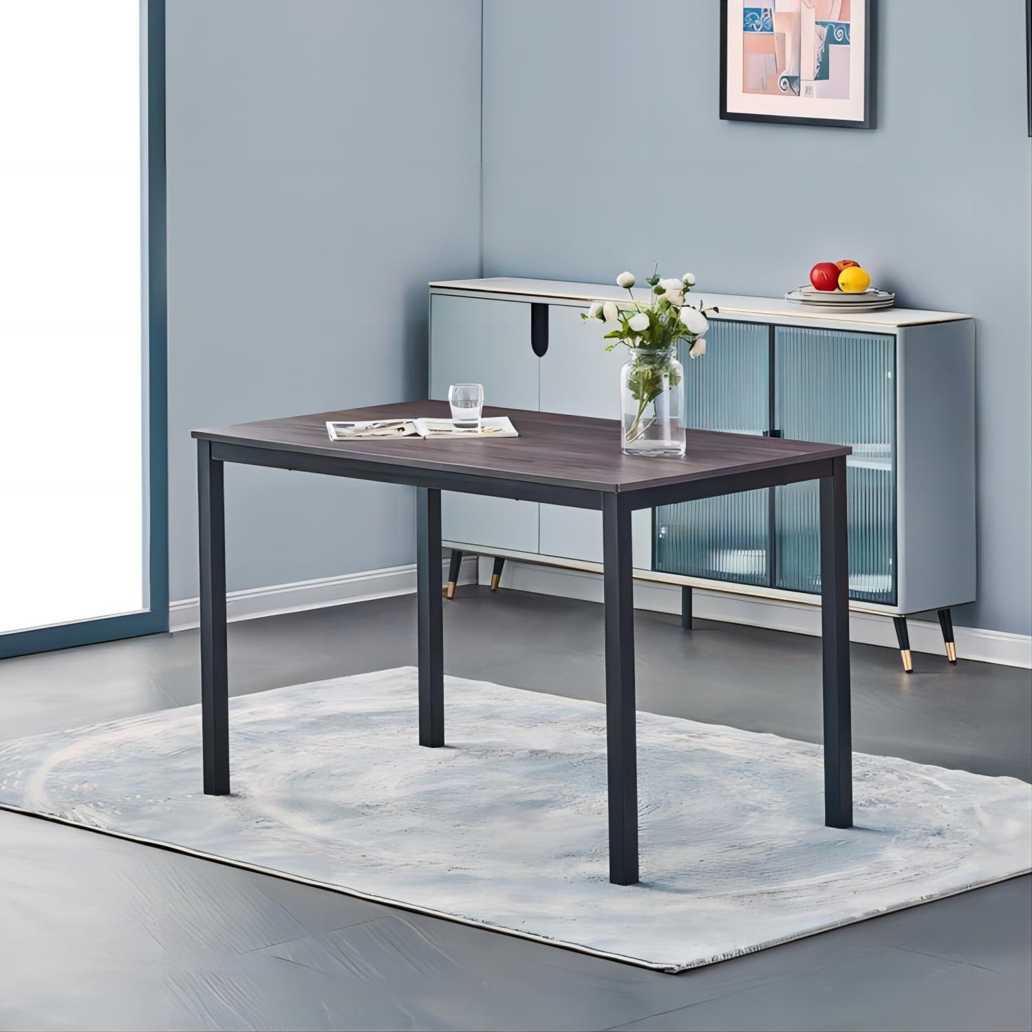 55.1''Contemporary Dining Table Walnut Color Table Top with Black Leg, for Living Room/Kitchen Table