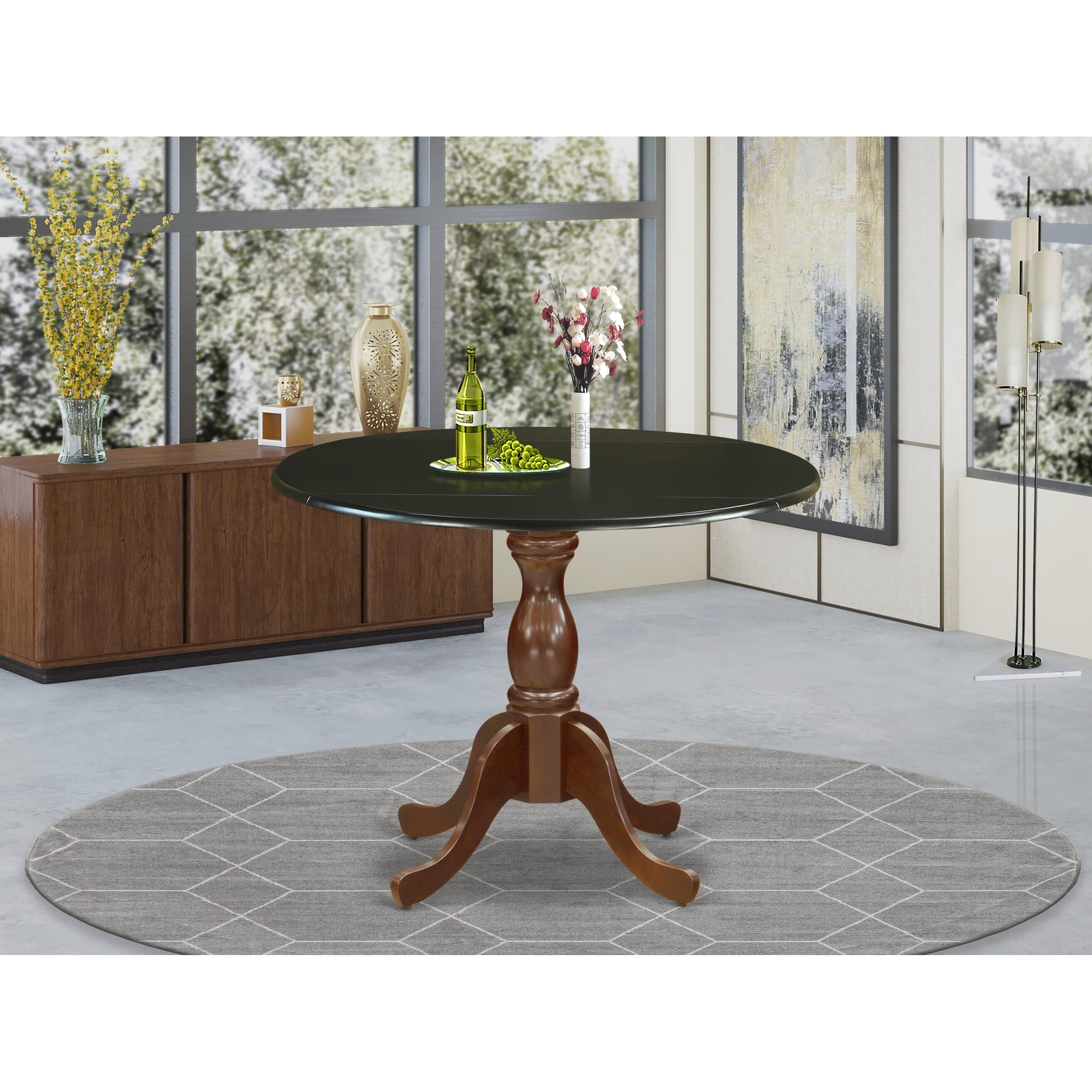 Kitchen Table with Drop Leaves - Black Table Top and Mahogany Pedestal Leg Finish - Multi