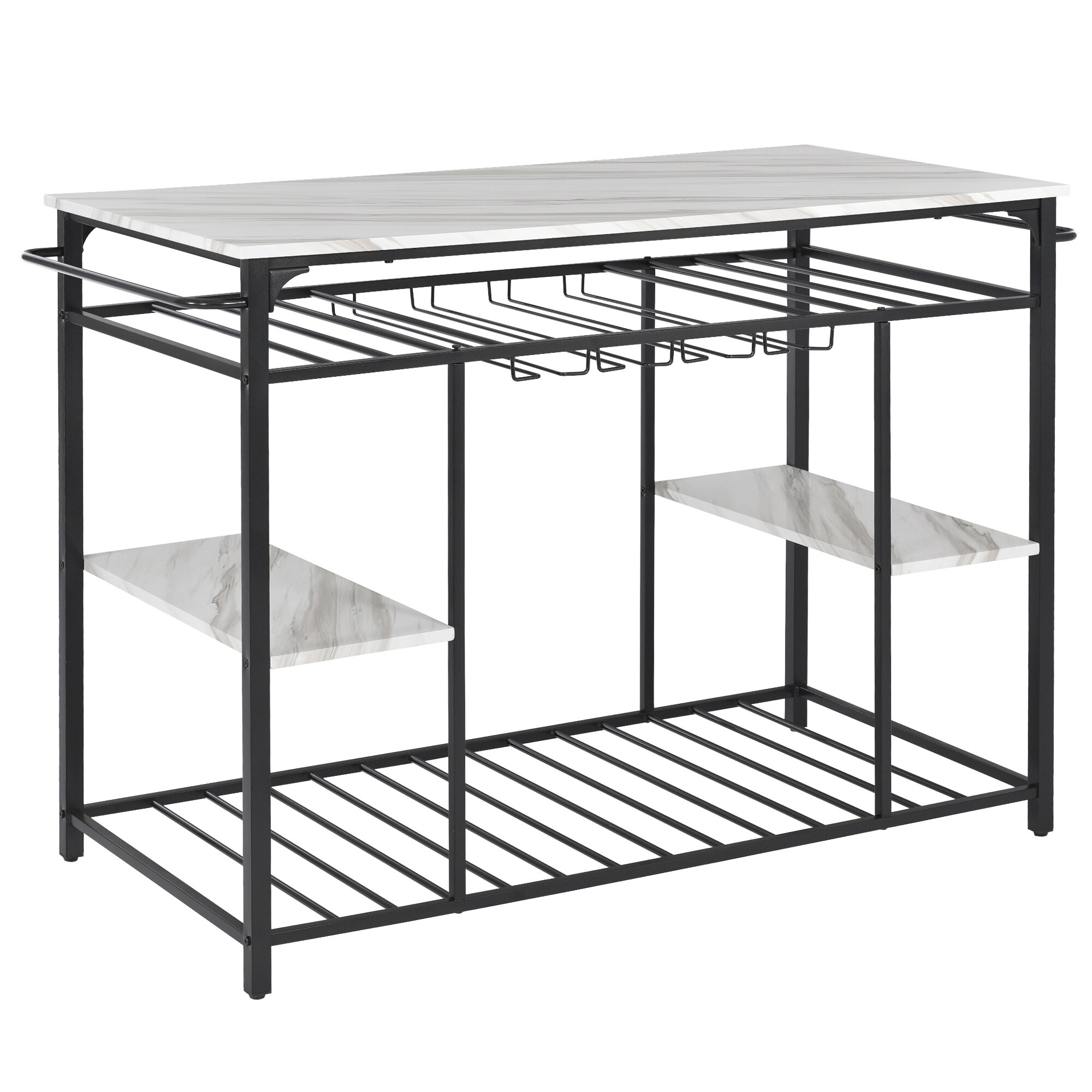 Counter Height Kitchen Table Island with Glass Racks, Marble White