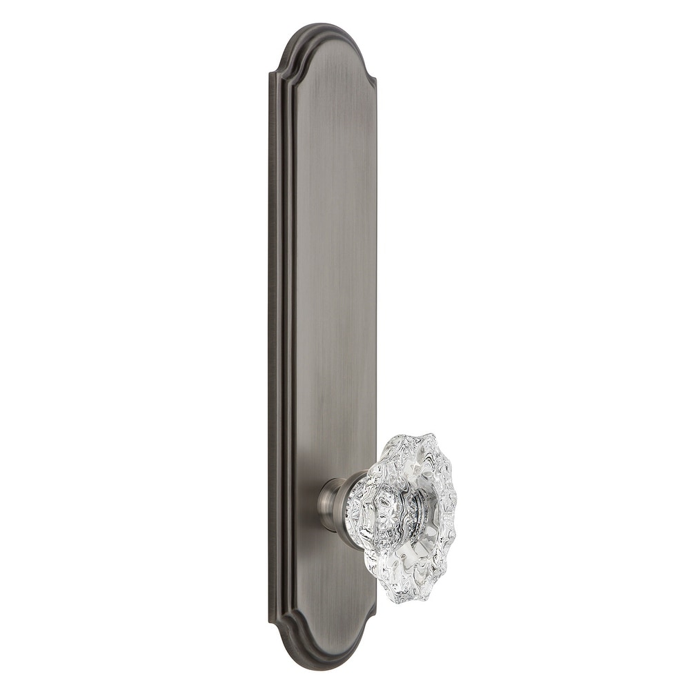 Grandeur Arc Solid Brass Tall Plate Rose Passage Door Knob Set with