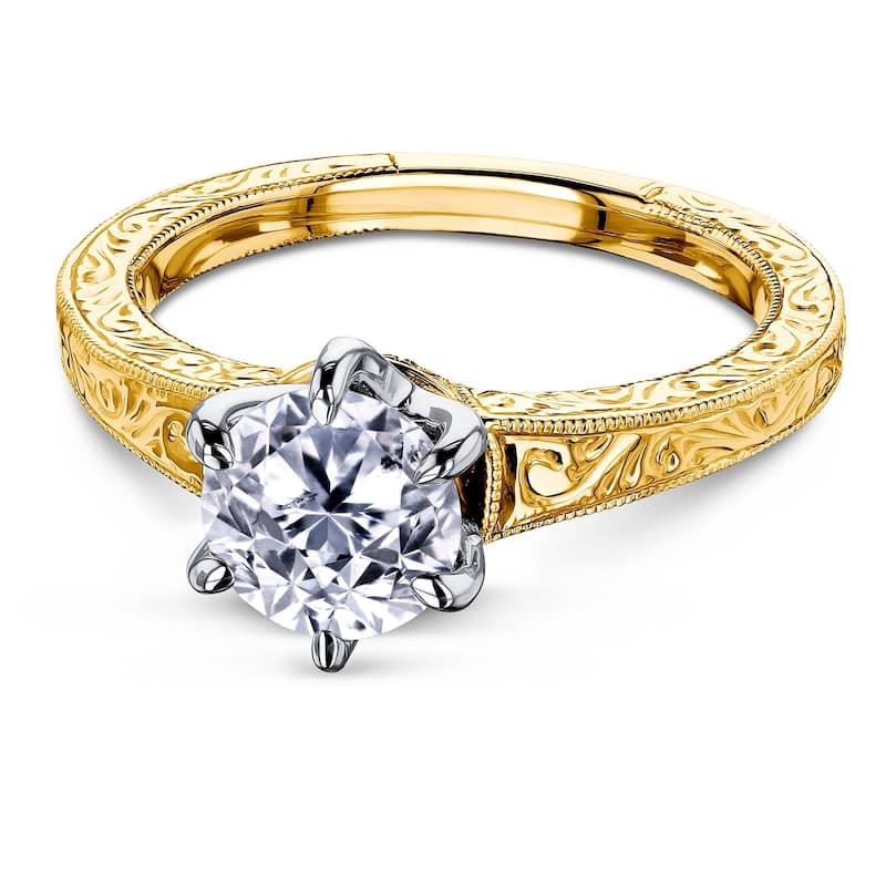 Annello by Kobelli 14k Gold 1 Carat 6-Prong Diamond Solitaire Vintage Engagement Ring