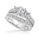 Moissanite and Diamond Halo Low-set Center Bridal Set 2 Carats TW in 14k White Gold
