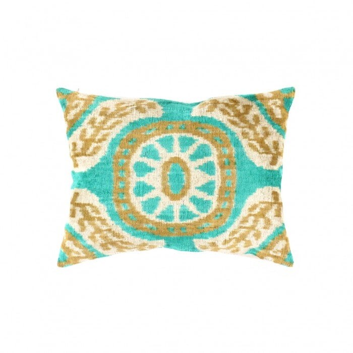 Canvello Decorative Throw Velvet Ikat Pillow - 16" X 24" - Green - Gold