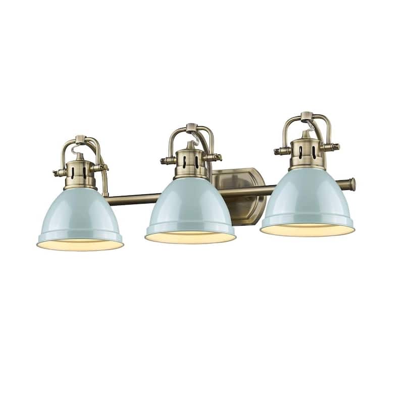Golden Lighting Duncan Brass 3-light Bath Vanity with Seafoam Shades