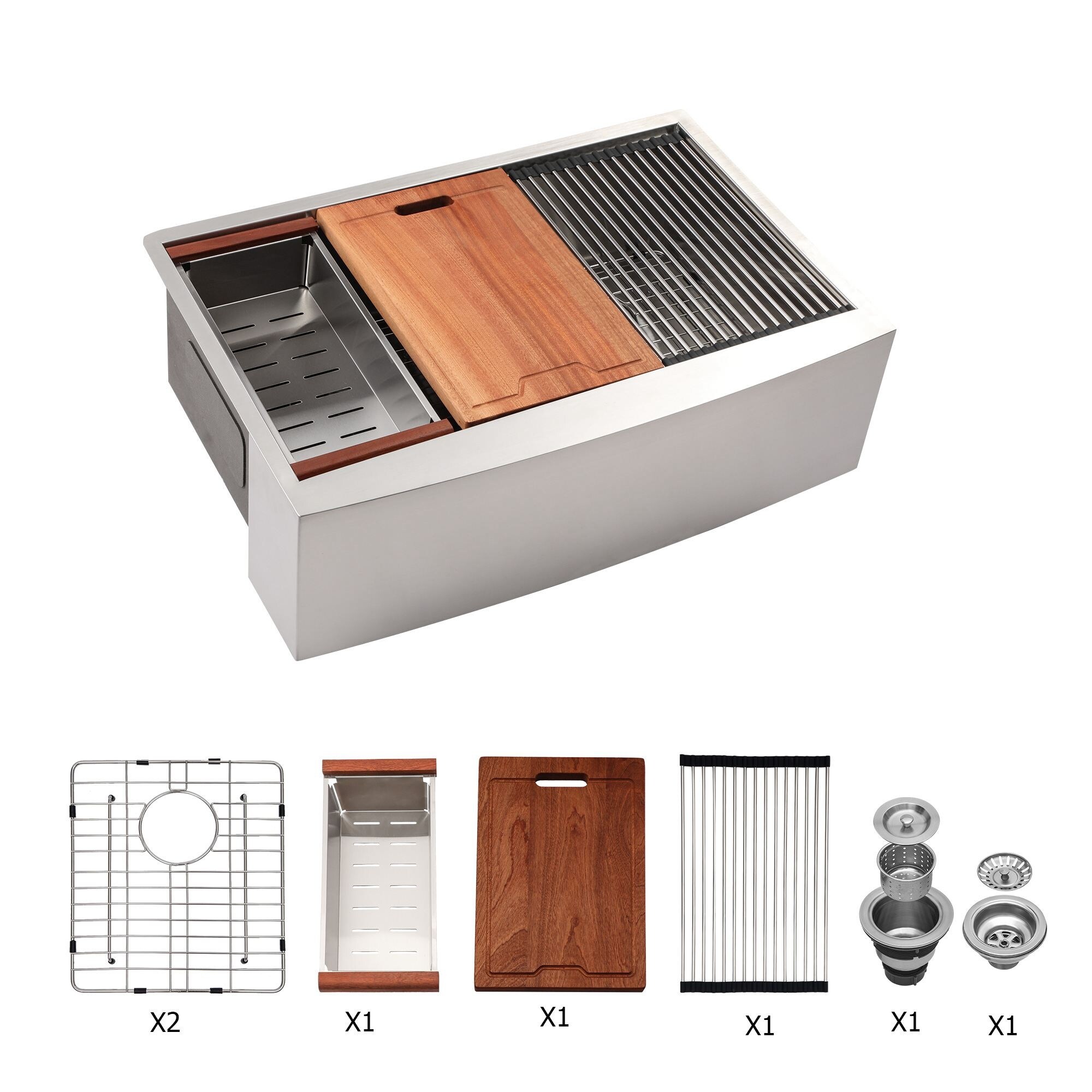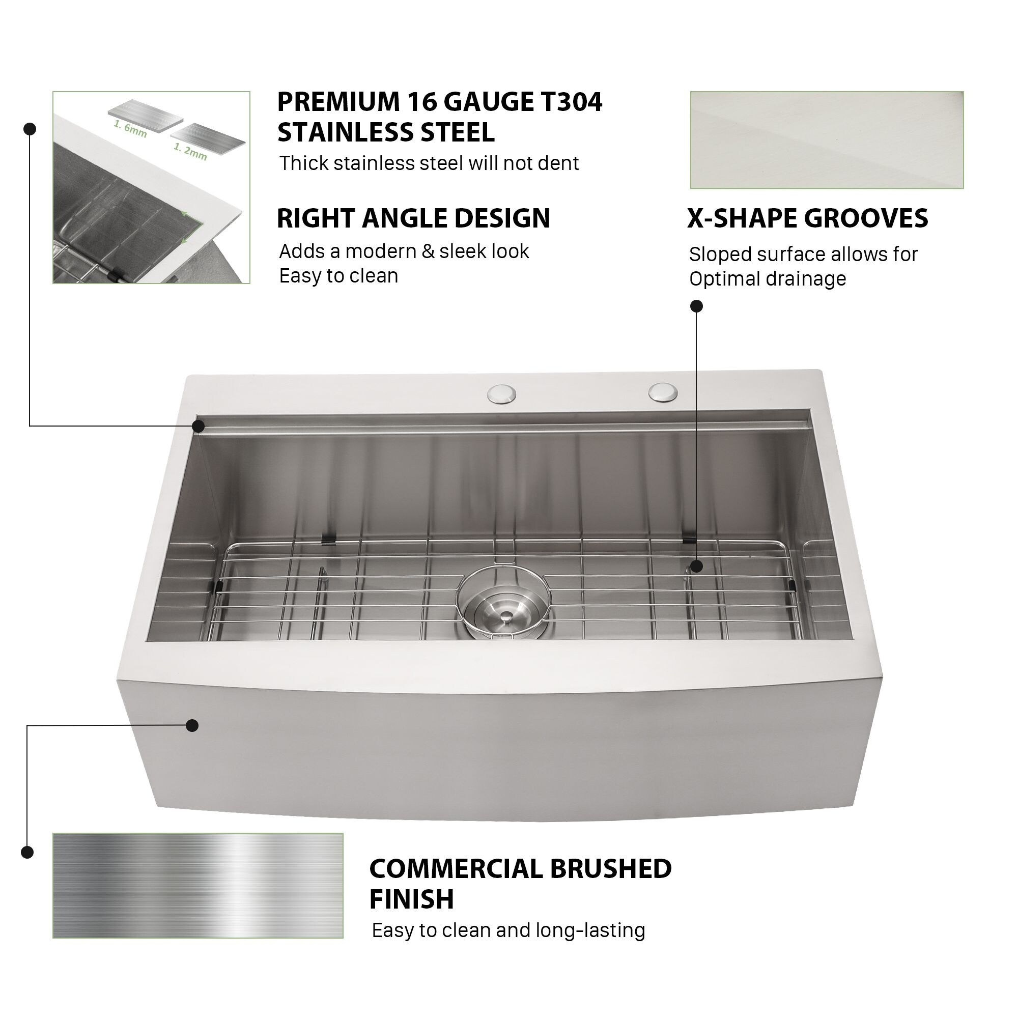 Farmhouse 33-inch Stainless Steel 16-gauge Single-bowl Curve Apron Kitchen Sink Set