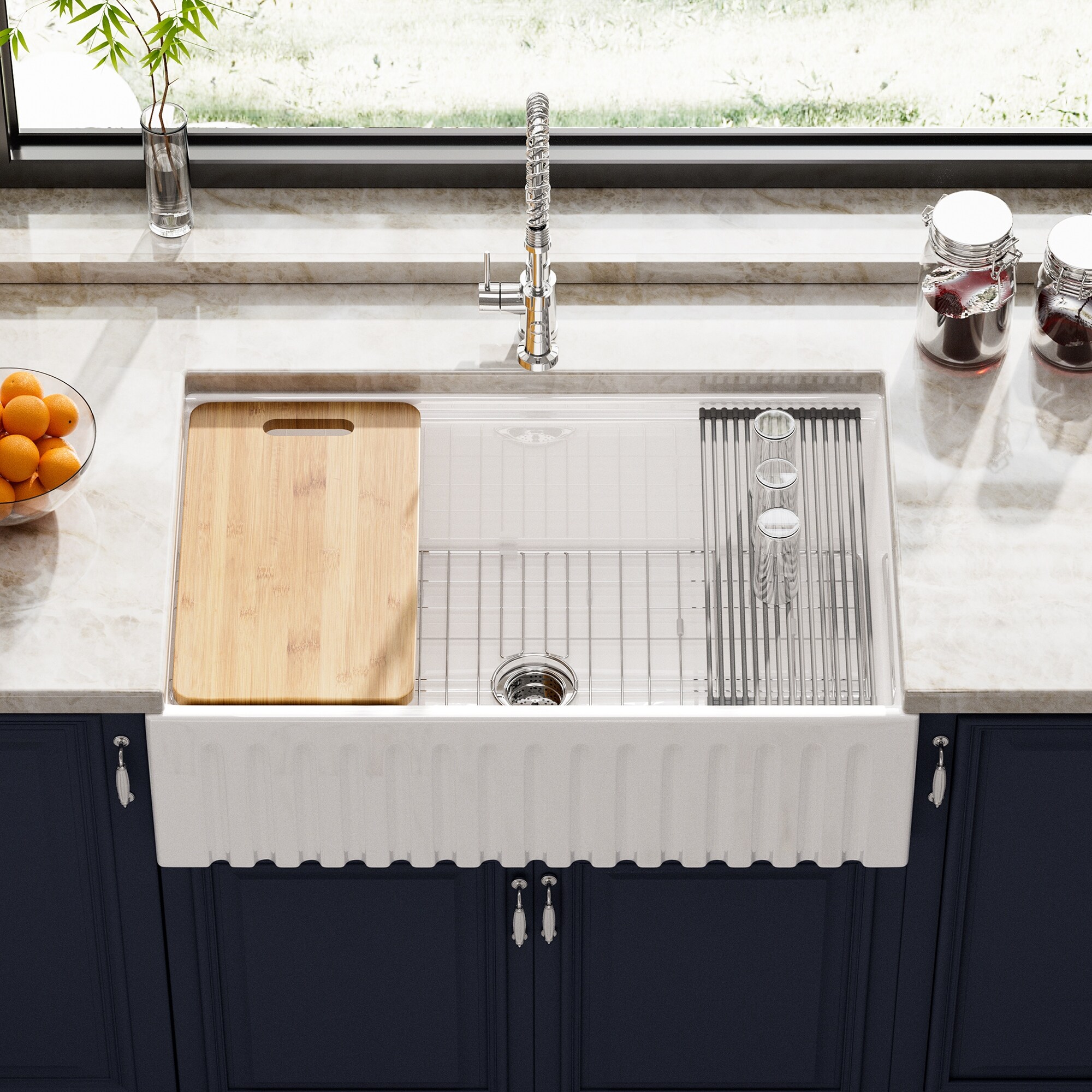 Vanityfair 33" L X 20" W Fireclay Single Basin Farmhouse Kitchen Sink with Accessories