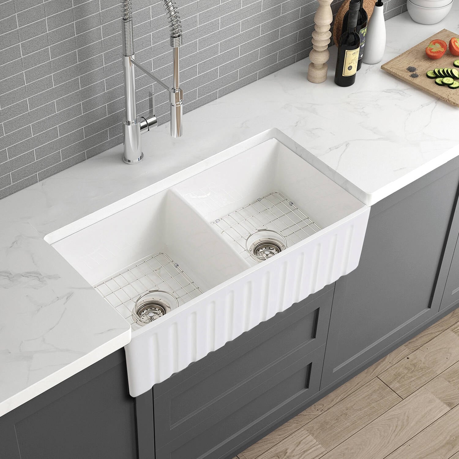 Vanityfair 33" L X 18" W Fireclay Double Basin Farmhouse Kitchen Sink with Accessories