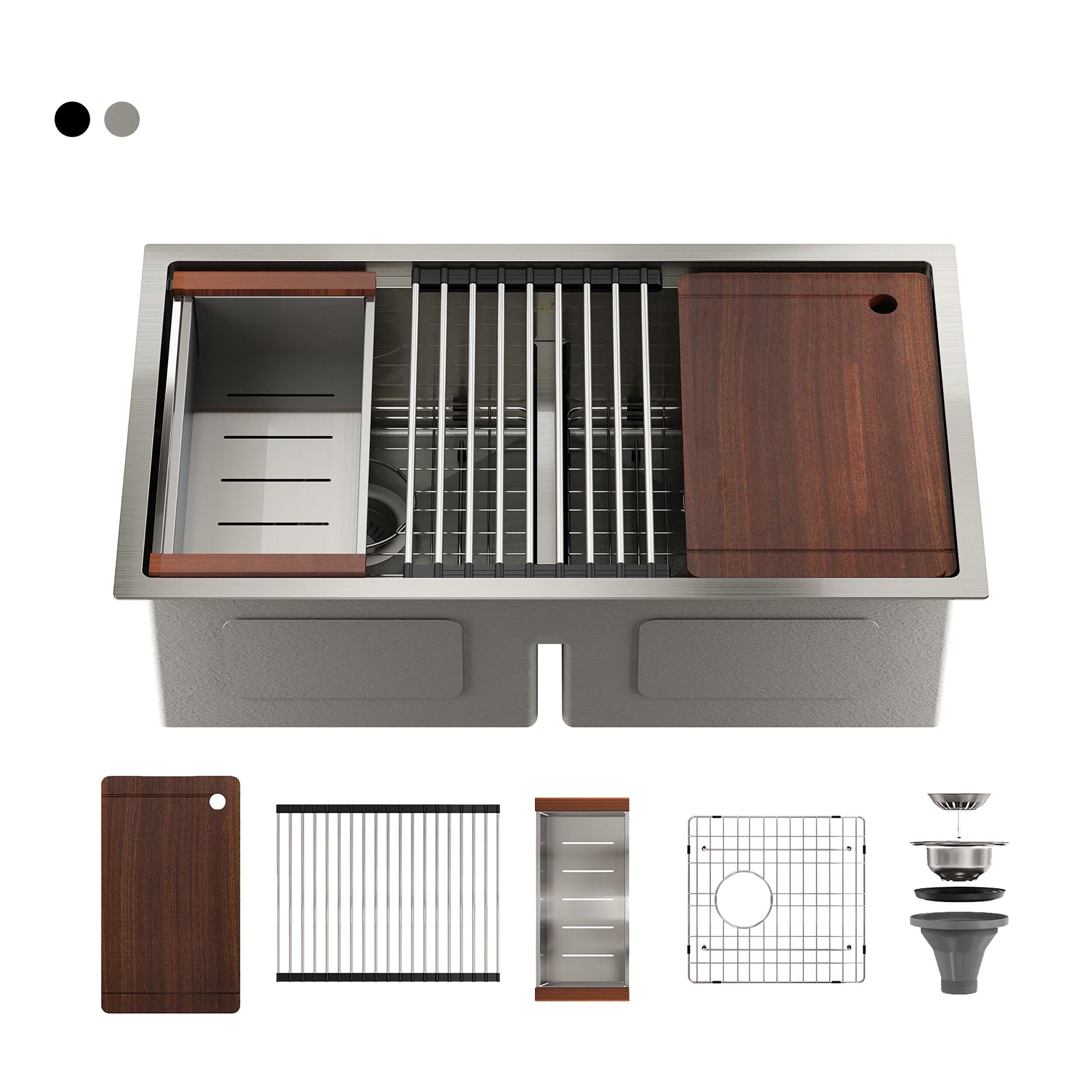 33 in. Apron-front Workstation Farmhouse Double Bowl Kitchen Sink