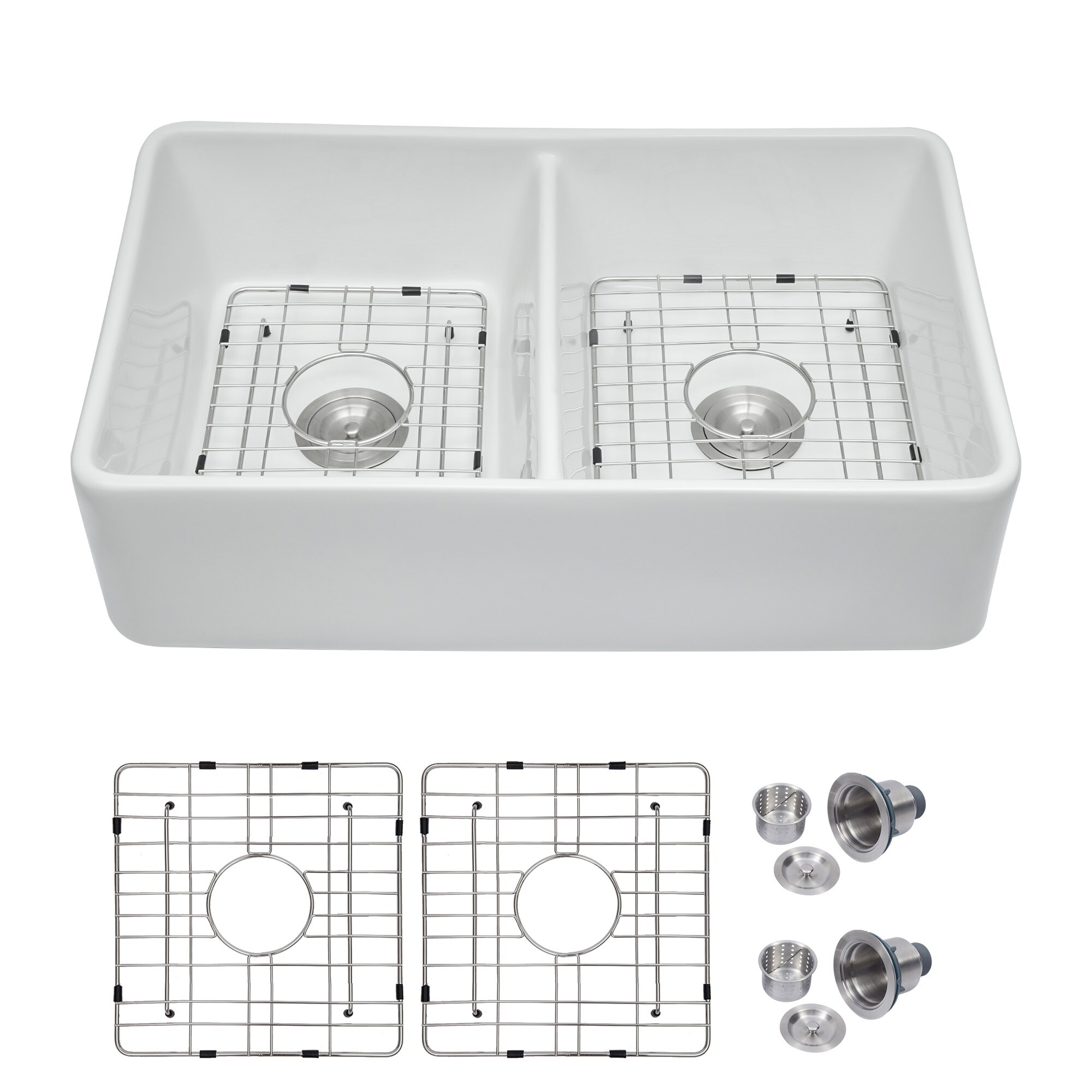 Vanityfair 33" L x 18" W Ceramic Double Basin Farmhouse Kitchen Sink with Accessories