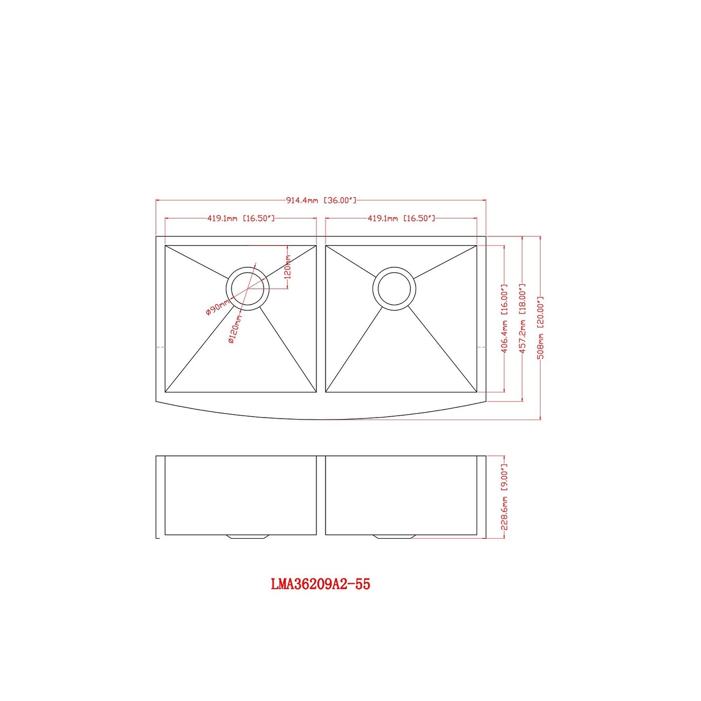 Lordear 33" /36" Double Bowl Stainless Steel Farmhouse Apron Kitchen Sink