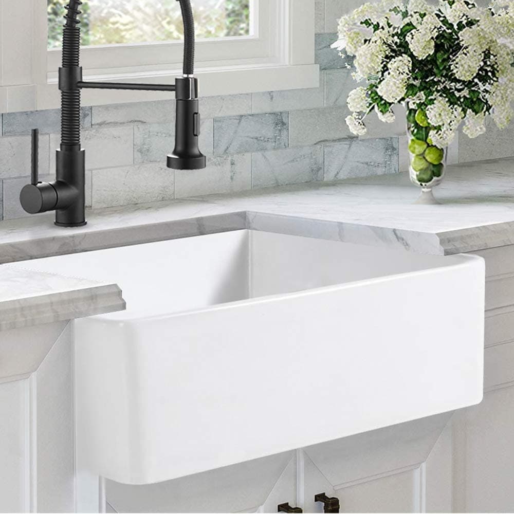 TOBILI White Fireclay Farmhouse Kitchen Sink - 33*20*10