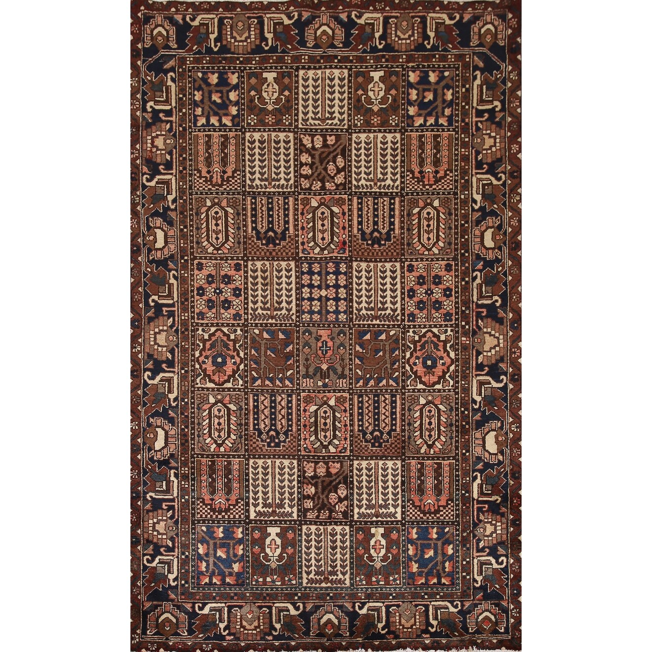 Garden Design Bakhtiari Persian Vintage Rug Hand-Knotted Wool Carpet - 5'1"x 8'5"